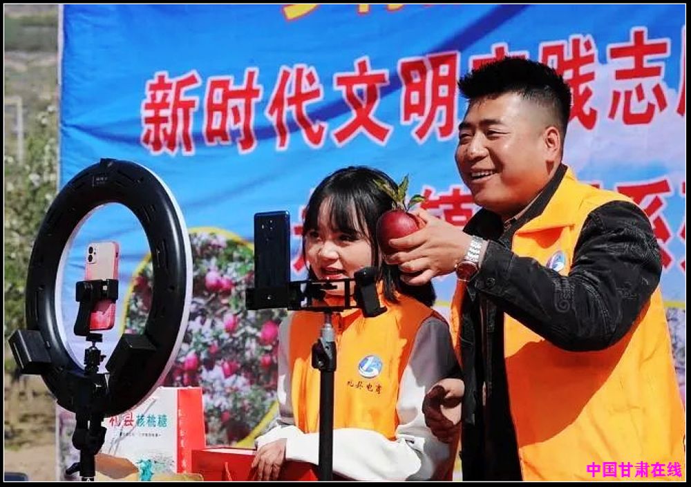 中国甘肃在线礼县讯 近日,在礼县举办的“苹果花开·探秘秦源”新时代文明实践系列活动中,15家电商直播志愿服务企业,20多位直播志愿者通过抖音、快手、拼多多、淘宝等多个平台同步开展带货直播,当天直播观看人数达80多万人次,苹果脆片、苹果汁等农特产品下单5000多件,销售额达20多万元。