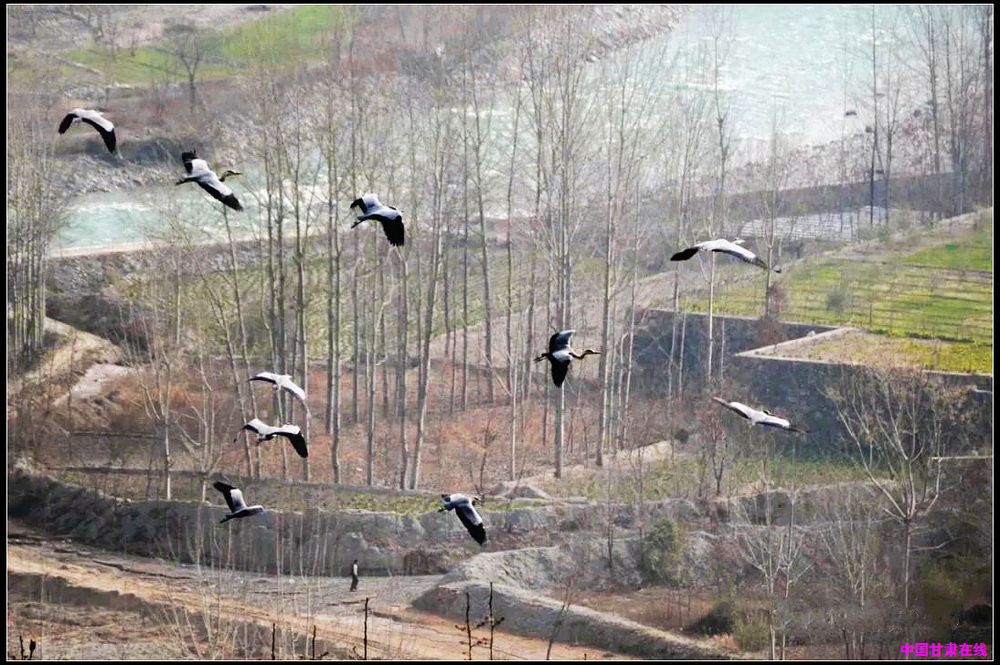 中国甘肃在线武都讯(通讯员王骞瑶 朱崇玥)近日,在武都区朝阳洞,成群的灰鹭在田间欢快地嬉戏、觅食。每年立春,灰鹭便陆续飞来朝阳洞古白杨树上,开始筑巢安家,雌鸟负责搭巢,雄鸟四处捡树枝,一对对灰鹭紧张忙碌着,给各自搭建爱巢。这些灰鹭体型纤长,姿态轻盈。它们时而低头啄食,时而展翅高飞,成为春日里一道美丽的亮丽风景。