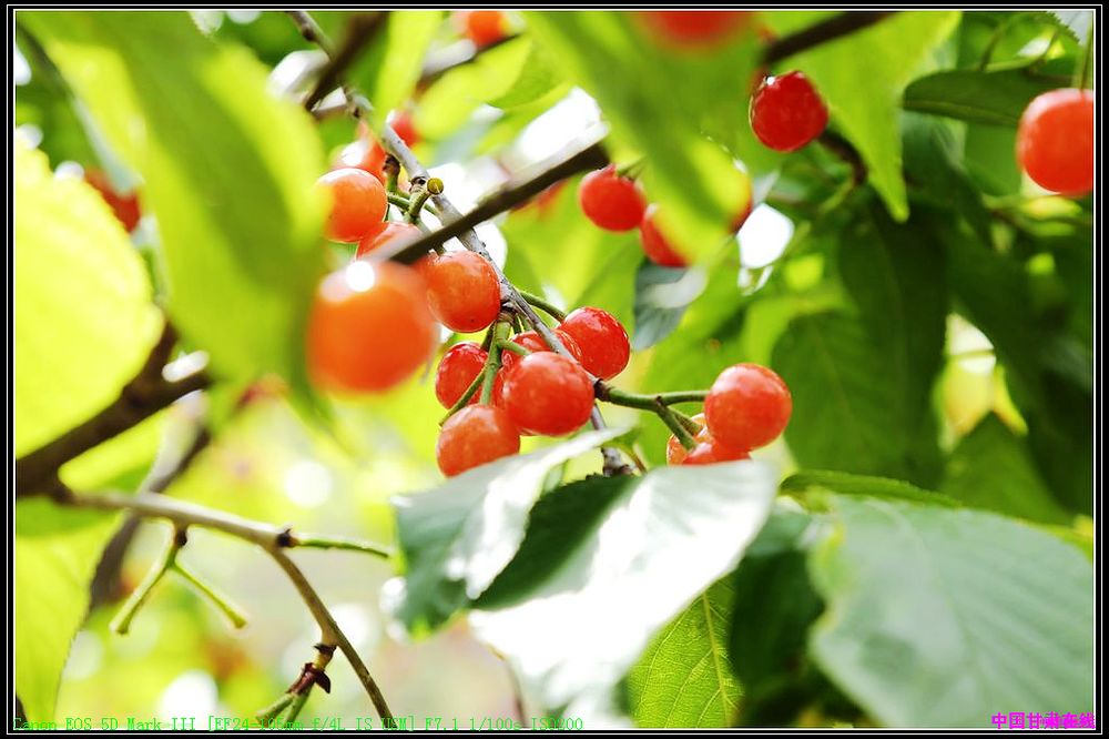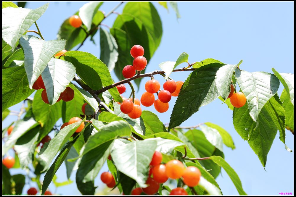 中国甘肃在线武都讯(通讯员 李圆丰 王治)眼下正是樱桃成熟上市的季节,近日,记者在陇南市武都区城关镇石家庄看到,一棵棵樱桃树枝繁叶茂,翠绿的叶子中成簇的樱桃挂满枝头,在阳光照射下晶莹剔透,煞是喜人。