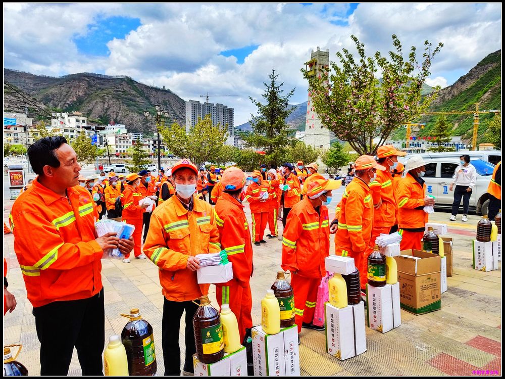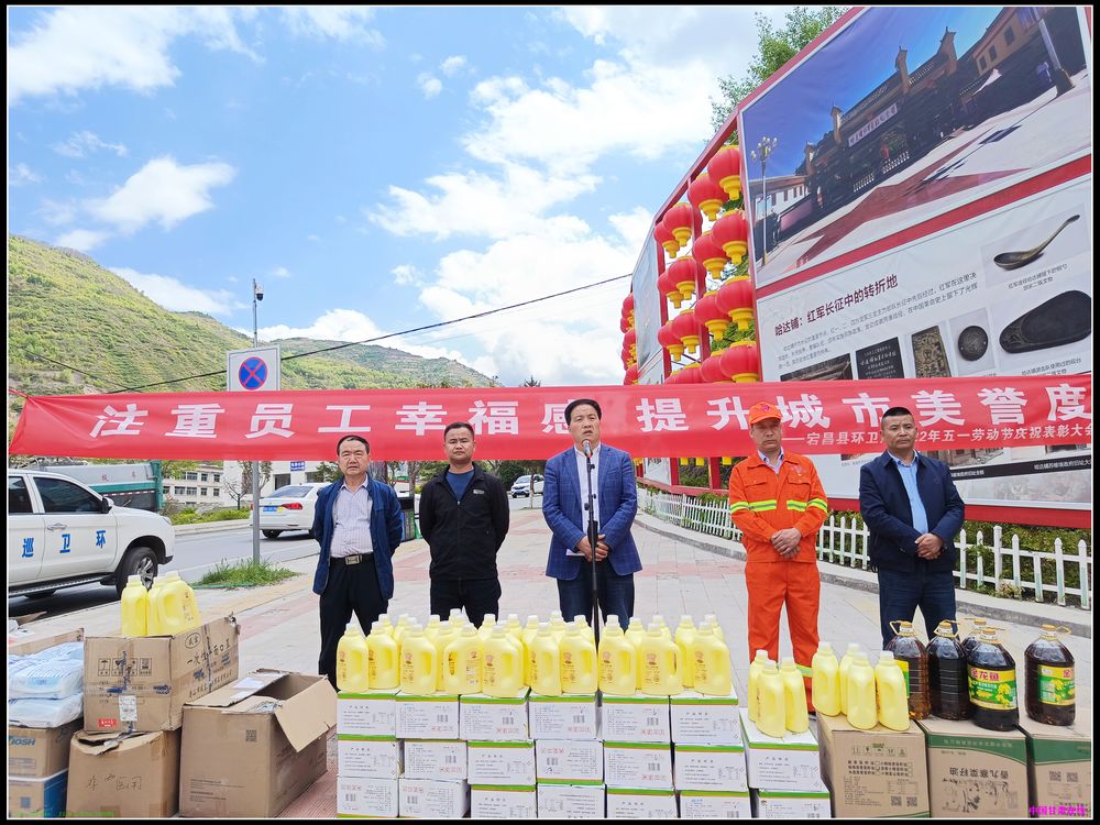 中国甘肃在线宕昌讯 4月27日下午,在“五一”国际劳动节到临之际,宕昌县环卫局对城区一线坚守岗位、辛勤劳动的环卫工人,注重员工幸福感,提升城市美誉度”节前系列慰问活动。
