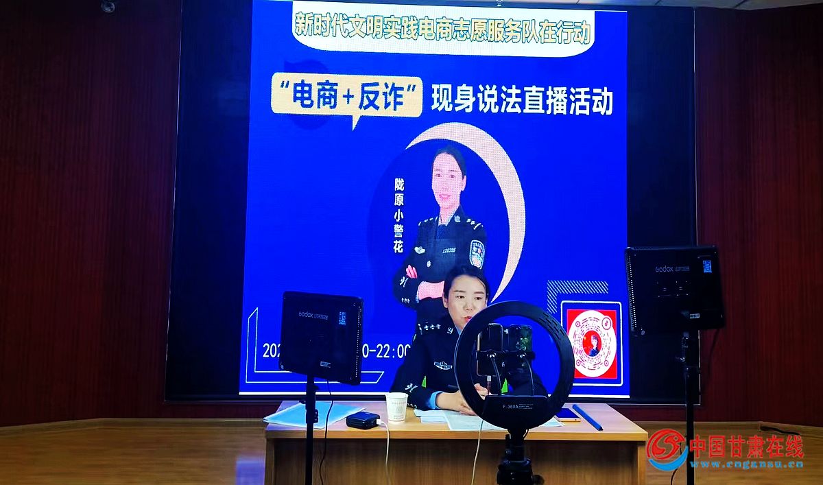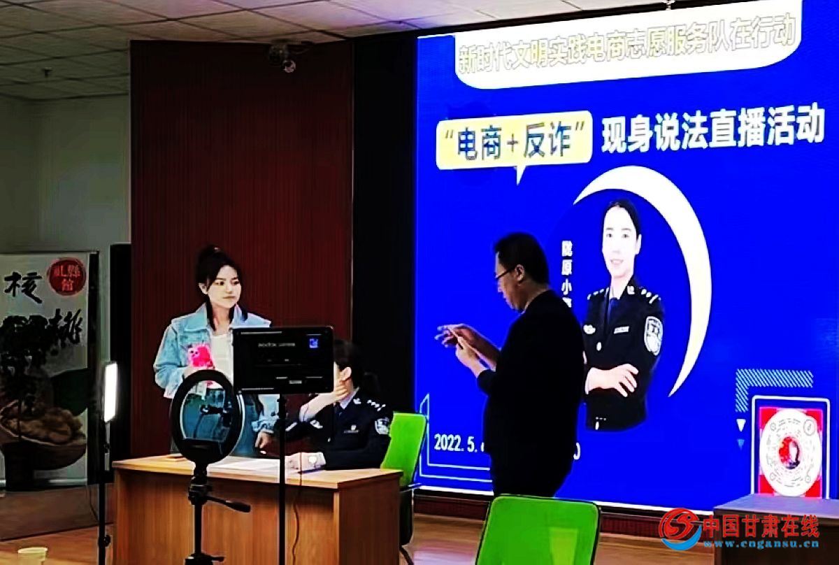 中国甘肃在线礼县讯 近日,礼县在新时代文明实践惠民活动中,将电商直播模式与公安反诈专家相结合,充分利用电商志愿服务队和公安局“反诈先锋”志愿服务队,融合开展“电商+反诈”主题直播活动,与近7000名网友在线进行防范电信网络诈骗知识互动交流。