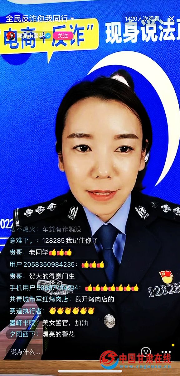在直播活动中,礼县“反诈先锋”志愿服务队队员李芸,利用“礼县公安”、“陇原小警花”抖音平台,在礼县电商志愿服务队的技术支持下,通过直播方式,为网友生动普及了反诈政策知识,讲解了电信网络诈骗真实案例,冒充公检法类诈骗、理财投资类诈骗、杀猪盘类诈骗、充当物流客服诈骗、网络刷单类诈骗等多种类型的诈骗“套路”和防骗知识,及国家反诈APP下载使用的方法。同时与网友互动,现场解答线上问题,解决网友在面对电信诈骗等方面遇到的问题。据悉,当天观看直播的网友达到了7000余人次。