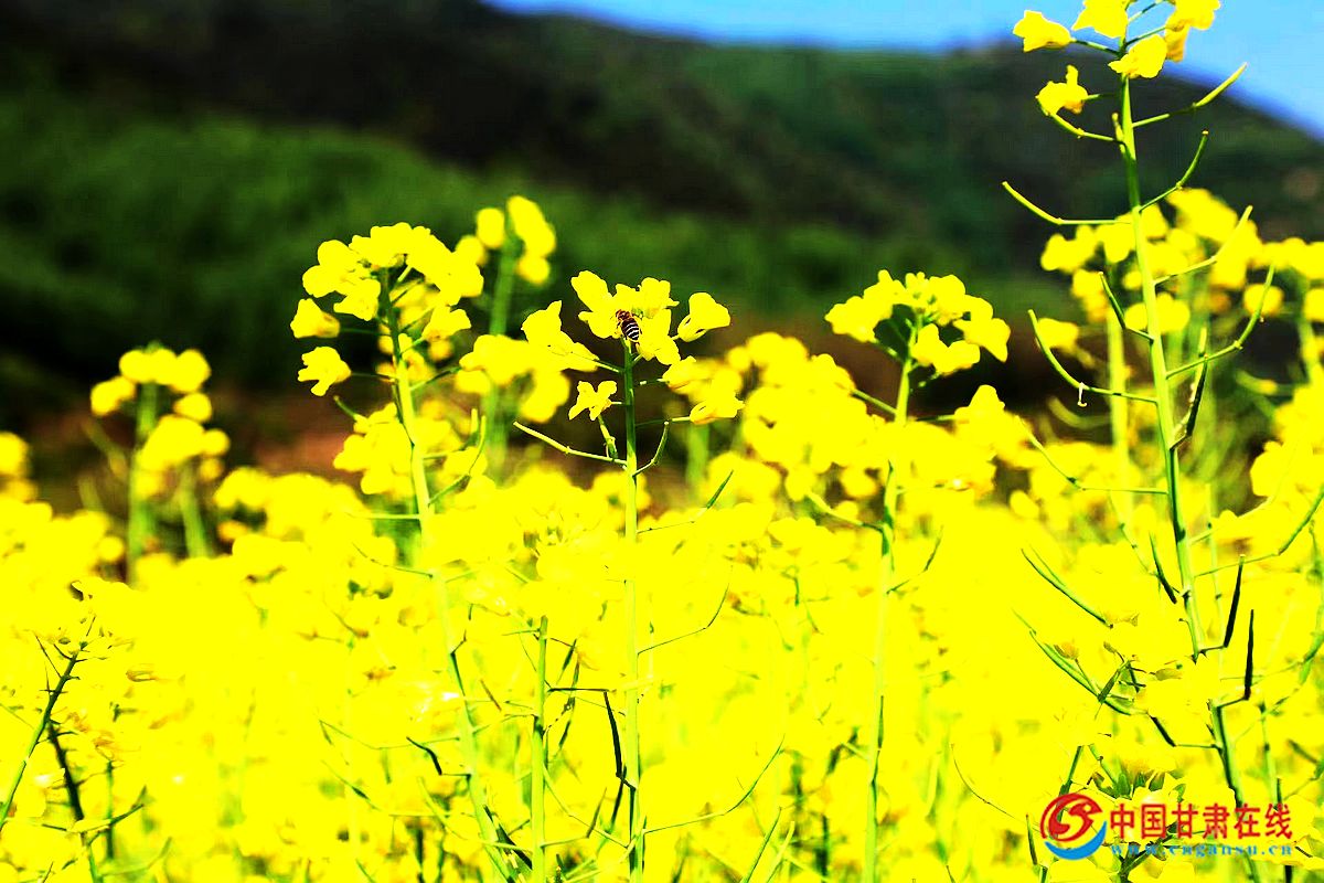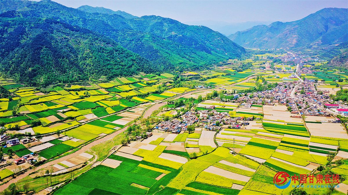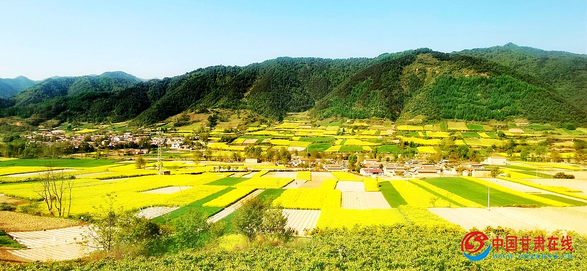 中国甘肃在线礼县讯 人间五月天,风光无限好。微风暖阳下,我们走进礼县洮坪镇,镶嵌于青山绿水间的油菜花海,浮光跃金,花香四溢,呈现了一场满城尽带黄金甲的优美画卷。