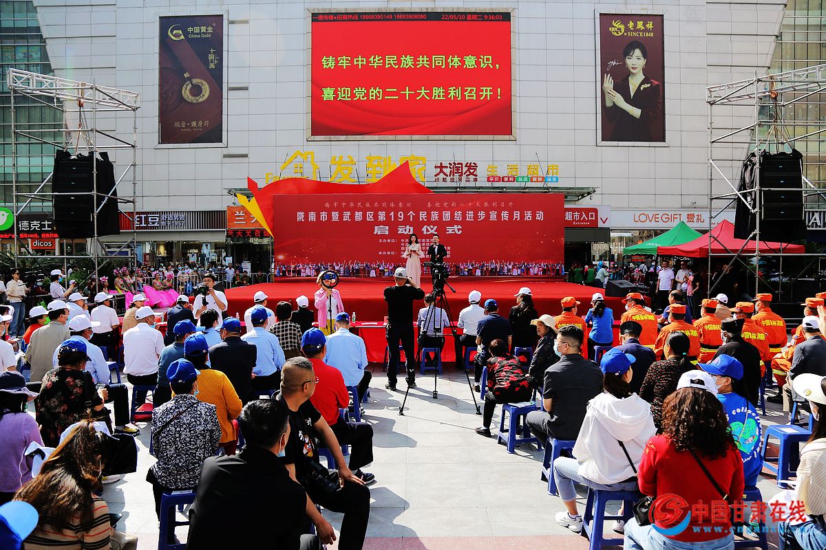 中国甘肃在线武都讯(通讯员 李圆丰)5月10日上午,以“铸牢中华民族共同体意识,喜迎党的二十大胜利召开”为主题的陇南市暨武都区第19个民族团结进步宣传月活动在武都区兰天广场启动。
