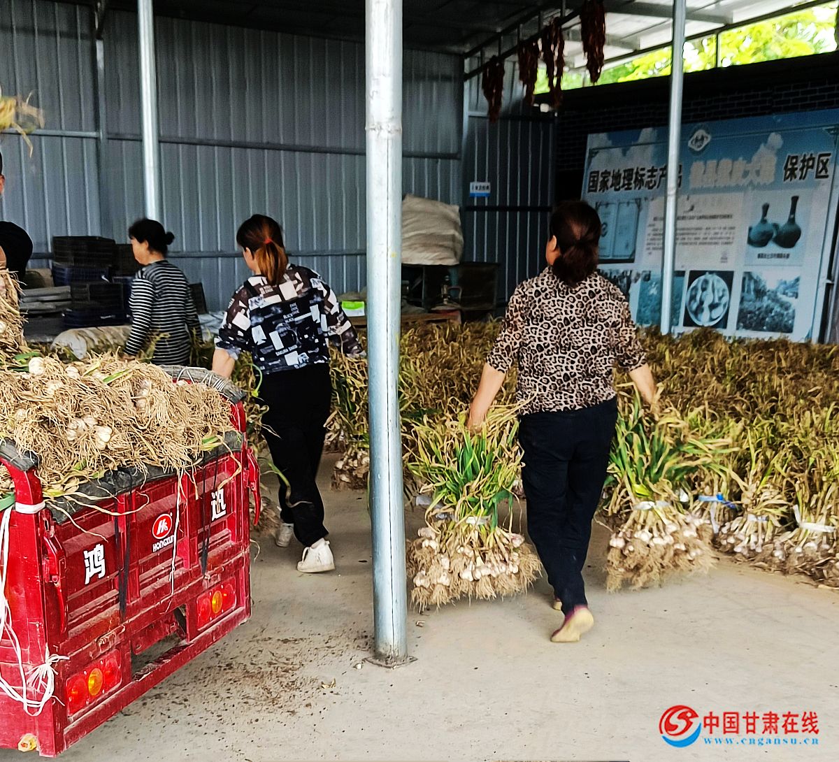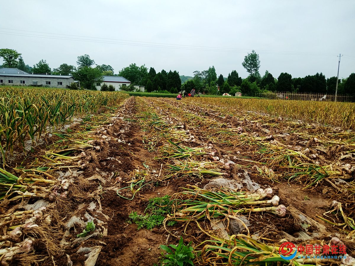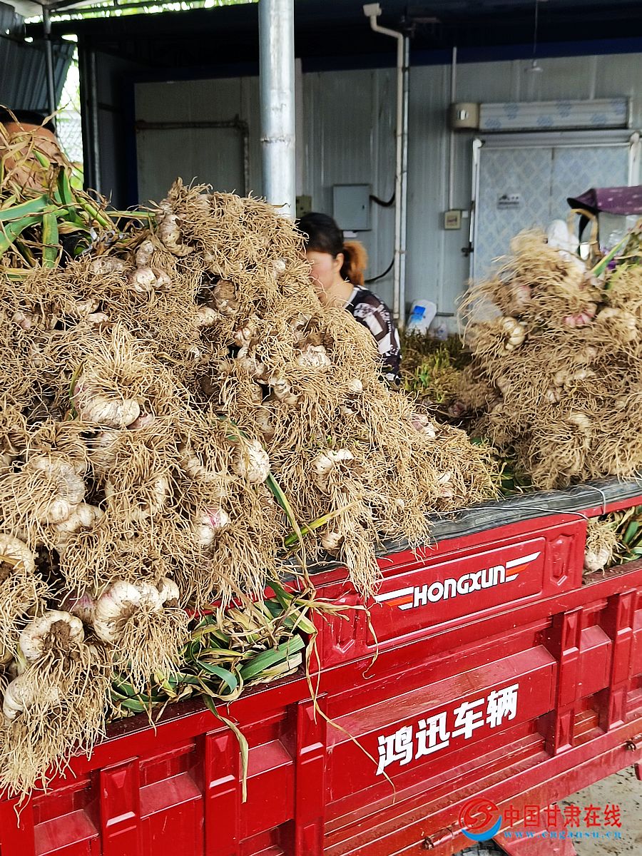 中国甘肃在线徽县讯(通讯员 张雪)蒜头虽小,也能撬动大产业。时下正是徽县泥阳镇紫皮蒜大量成熟上市的好时节,远远望去,在中集村、寇庄村成片的大蒜田里,一辆辆农用三轮车满载着大蒜井然有序地出出进进,蒜农们趁着持续晴好的天气,抓紧时间采挖、挑拣、晾晒大蒜,田间地头到处弥漫着一股淡淡的蒜香味和丰收味。