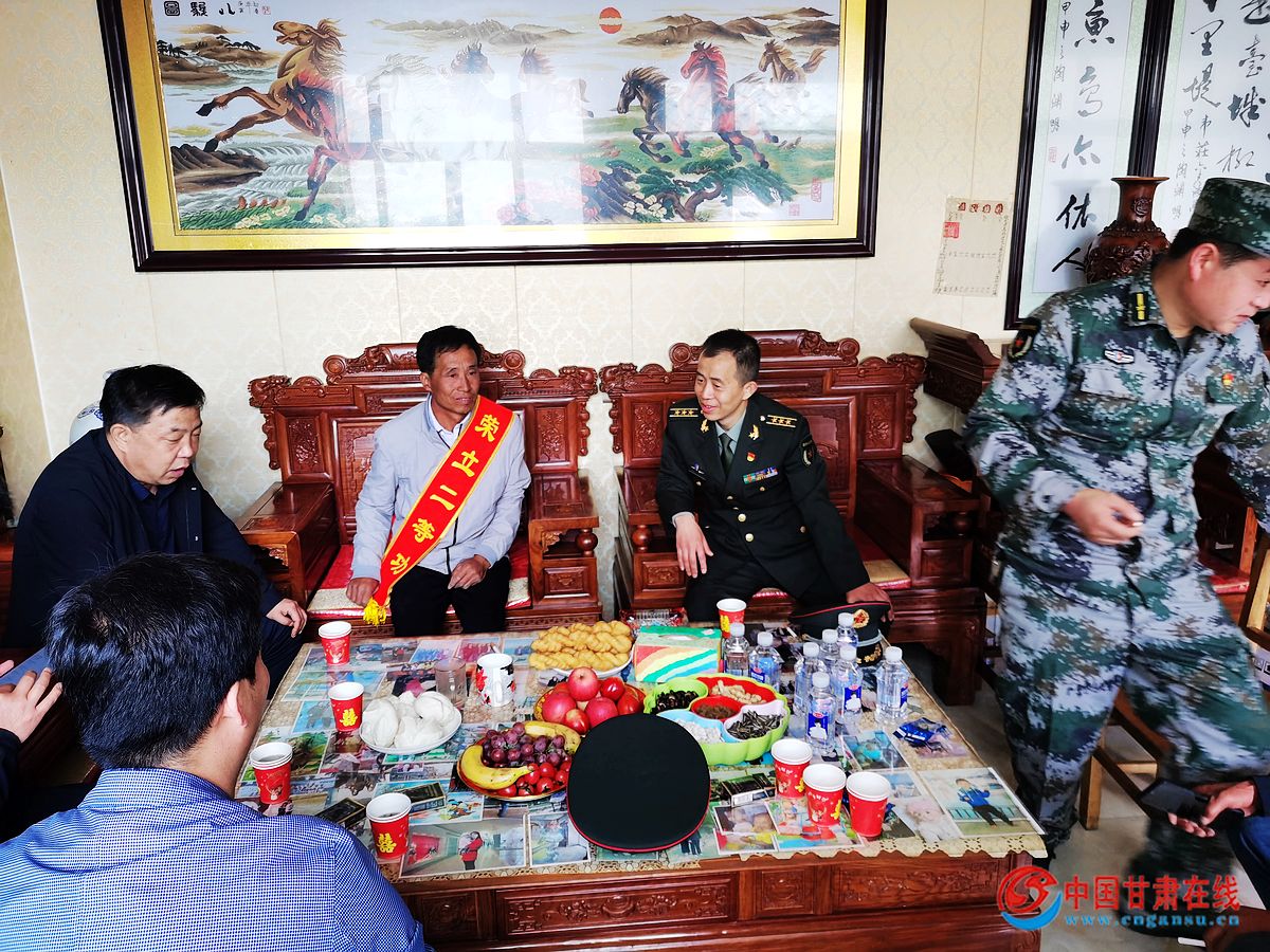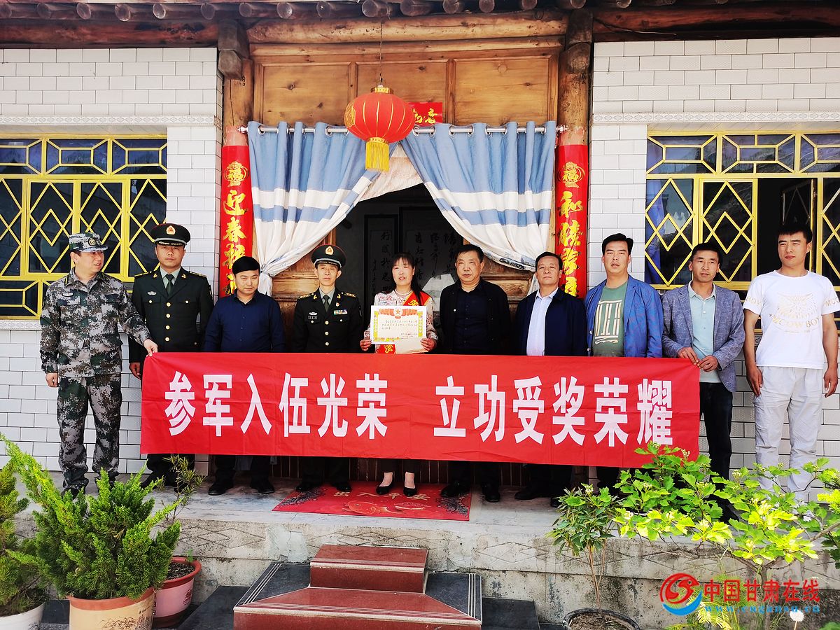 中国甘肃在线西和讯 喜报与爱情结伴,荣誉与幸福来临。5月20日,甘肃省西和县兴隆镇侯庄村魏显奎家热闹非凡,鞭炮齐鸣,锣鼓喧天,县人武部部长赵慧奇与退役军人事务局局长姜金黄为二等功臣魏显奎家送来了功勋荣誉。今天也是魏显奎与未婚妻陈珊珊的订婚仪式,军地联合慰问组为即将成为夫妻的两人送上了深深的祝福。