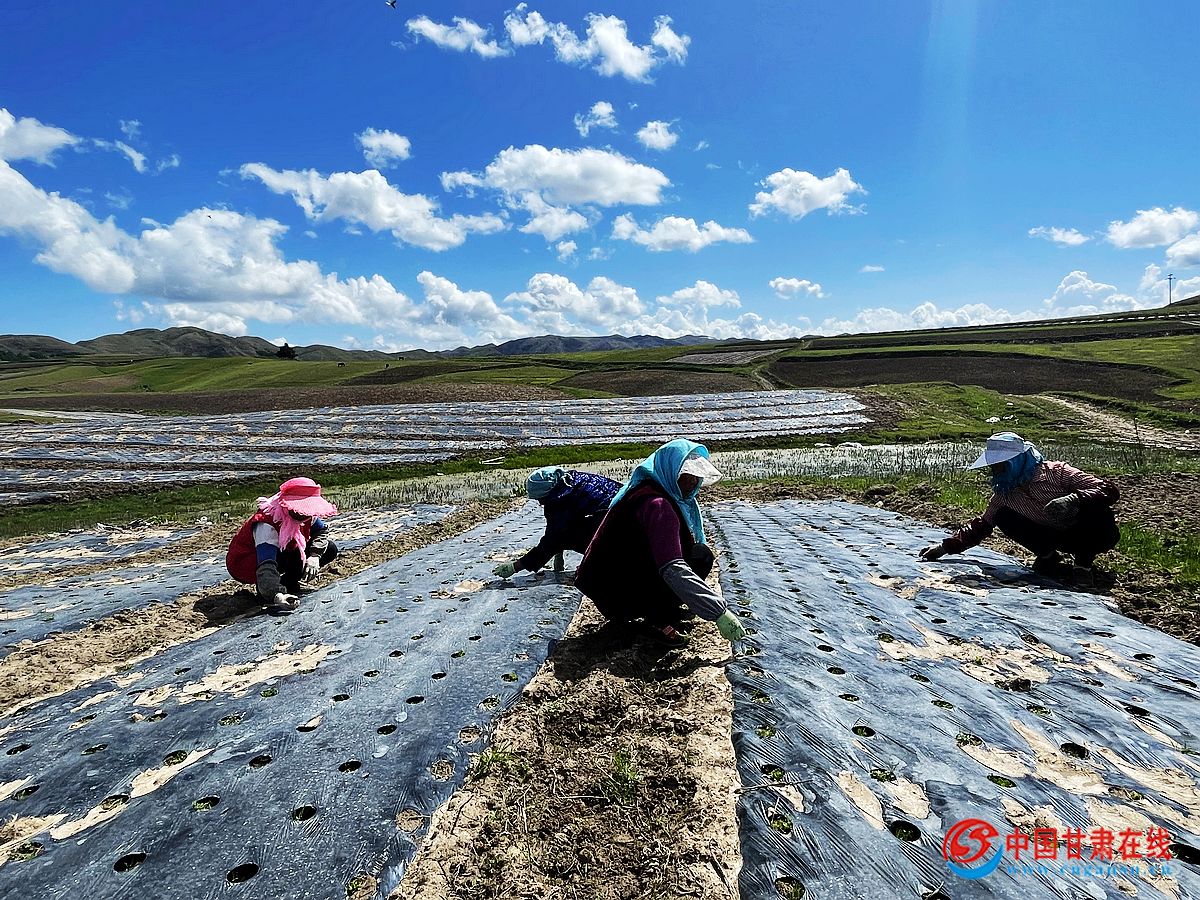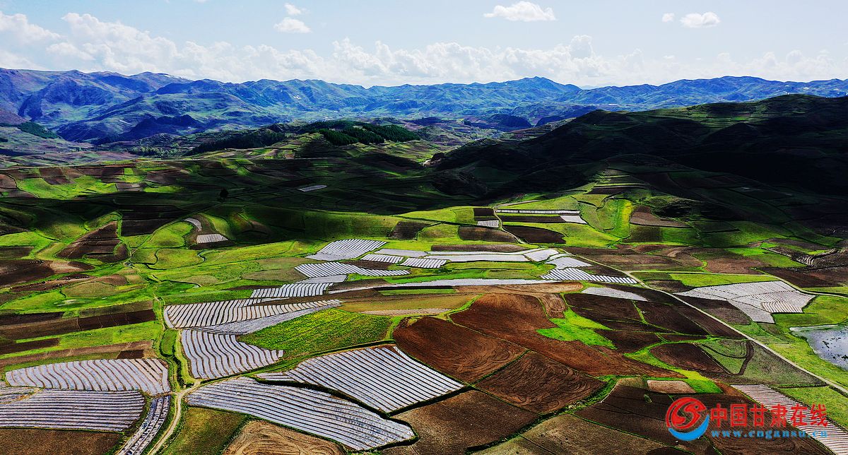 中国甘肃在线礼县讯 五月的草坪乡,苍山叠翠,绿草如茵,在湾里村高原夏菜种植基地,阡陌交错,莴笋幼苗破土而出,一畦畦、一垄垄,在阳光的映照下格外翠绿,田间地头,农户们忙着覆地膜栽种除草,一派繁忙的景象。