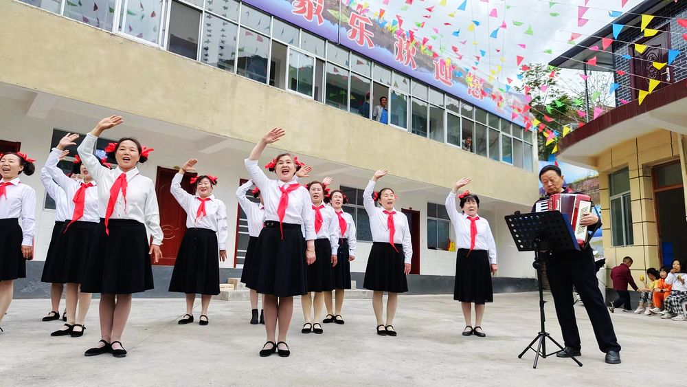 中国甘肃在线宕昌讯 沐浴着省党代会的强劲东风, 5月29日,宕昌县安博.官鹅之声老干部合唱团进农村,进社区举行喜迎省党代会暨庆“六一”文艺演出系列活动。使老年人青春永驻,文化娱乐生活丰富多彩。