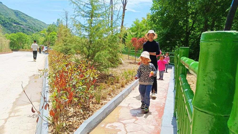中国甘肃在线宕昌讯 五月的宕昌县竹院乡涌动着“竹光绿影”,一株株,一棵棵栽植好的红叶石兰、格桑花、三叶草在村道两旁,绿色长廊含苞待放,从高远望“美丽竹院、幸福家园”六个大字矗立在路口乡间石头上。