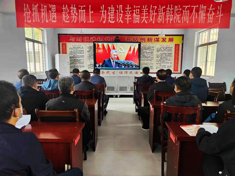 韩院乡组织全体领导干部观看了省第十四次党代会开幕式盛况,乡党委书记罗彦表示,作为一名乡镇党员领导干部,要在习近平新时代中国特色社会主义思想的指导下,在省委的坚强领导下,迎难而上、开拓奋进,牢牢把握以人民为中心的发展思想,将增进人民福祉、促进社会经济发展作为出发点和落脚点,把自身工作融入到省委“四强”行动战略中去思考、去谋划、去落实,力争在新的起点上实现新的跨越。围绕县委“1346”总体思路,以脱贫攻坚成果巩固与乡村振兴有效衔接为主线,以基础设施、特色产业、乡村治理、精神文明为重点,将幸福美丽新村建设和产业发展、乡村治理等规划有机结合,因地制宜建设多态融合的幸福美丽新家园,加快推动形成以点串线带面美丽乡村建设格局,群众的生产生活条件将更加便利,宜居秀美新家园初具雏形,群众的获得感、幸福感稳步提升。