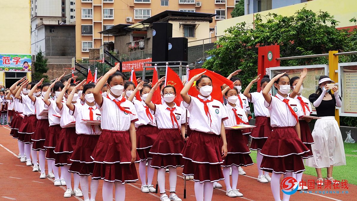 仪式上,高年级优秀队员代表为240名新队员们佩戴上鲜艳的红领巾。随后,全体少先队员在鲜艳的队旗下庄严宣誓,铿锵嘹亮的誓言,表达了全体少先队员对未来无限的憧憬和坚定的信念。