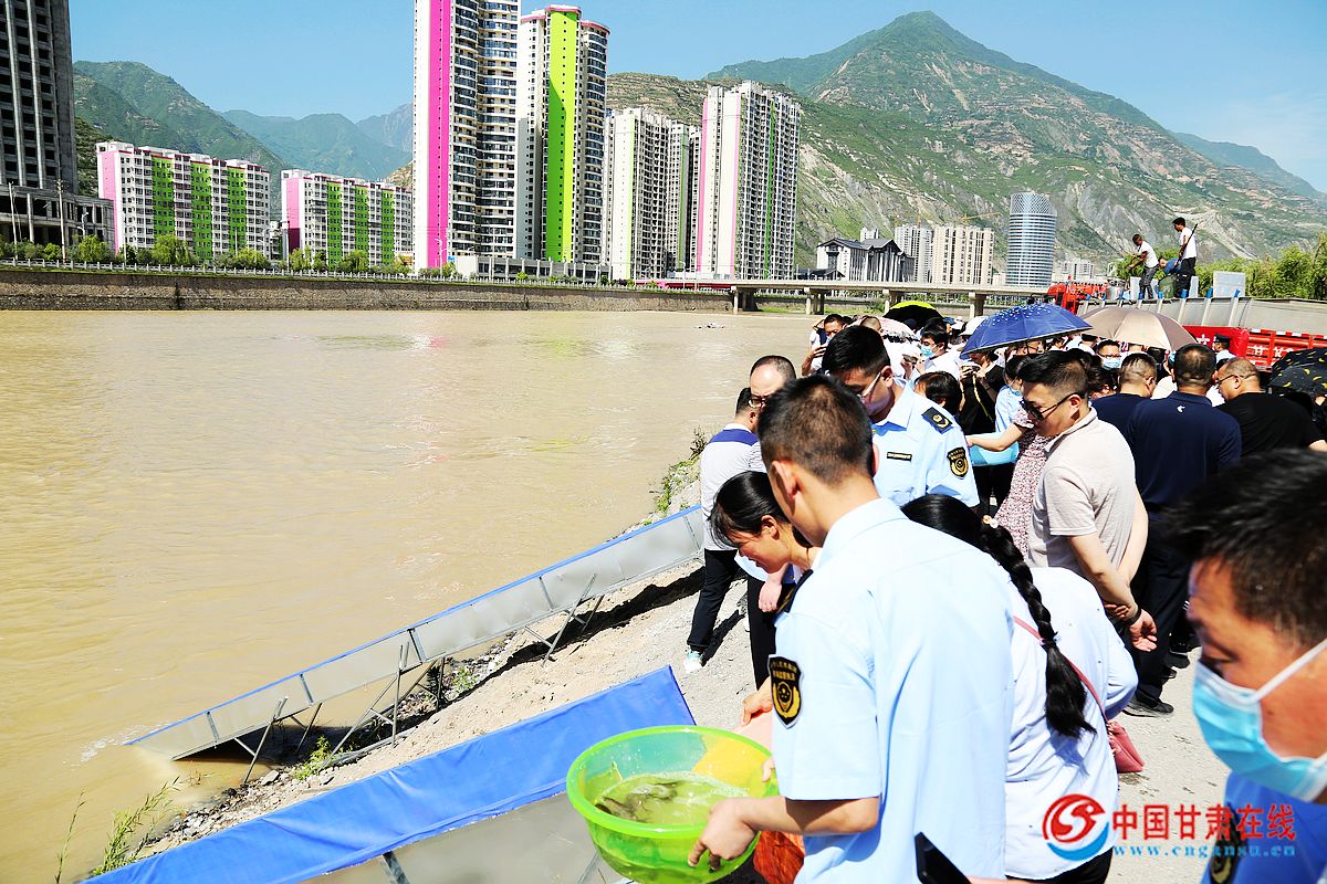 中国甘肃在线武都讯(通讯员 胡本平 李剑超)6月6日,围绕“养护水生生物,建设美丽中国”的主题,2022年全国“放鱼日”甘肃同步增殖放流活动在陇南武都举行。此次放流活动投放重口裂腹鱼苗56万尾,有效恢复土著鱼类种群数量,维护了生物多样性,对改善水域生态环境具有十分重要的意义。