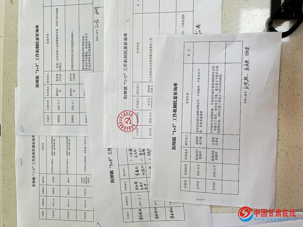 为全面详细掌握民意诉求,更准确地反馈民生诉求,阳坝镇设置并下发“阳坝镇‘1+3’工作机制民意征询单”,由各村负责上报征集到的各项内容,镇上选派专人负责对全镇征询内容进行统一汇总和分类,确保全方位掌握民情民意。