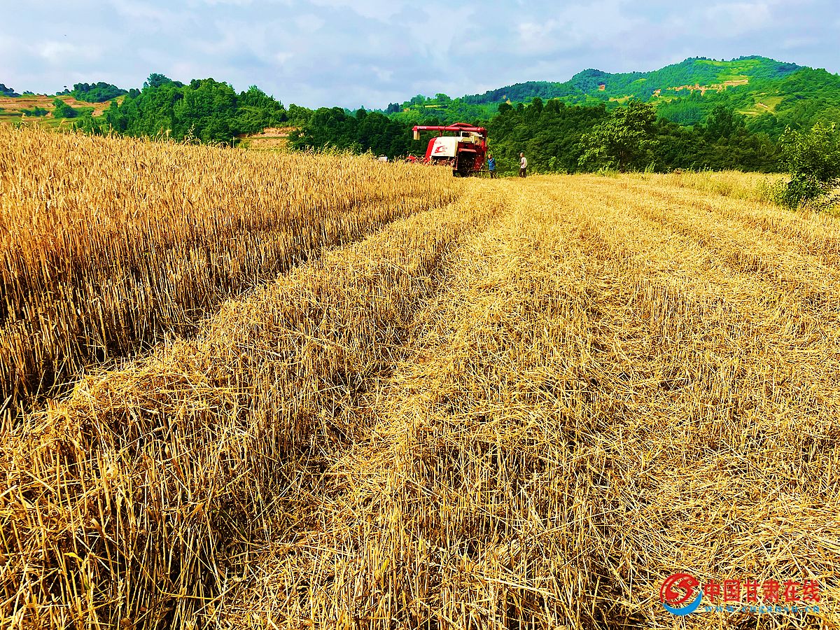 中国甘肃在线两当讯(通讯员:韩静)又是一年丰收季,6月10日上午,在两当县显龙镇川头村的麦田里,随着一台台收割机的轰鸣声响,麦穗顷刻间脱粒,一幅生动的乡村丰收图映入眼帘。据悉,今年两当县共种植小麦2.84万亩,目前全县小麦已陆续开镰。