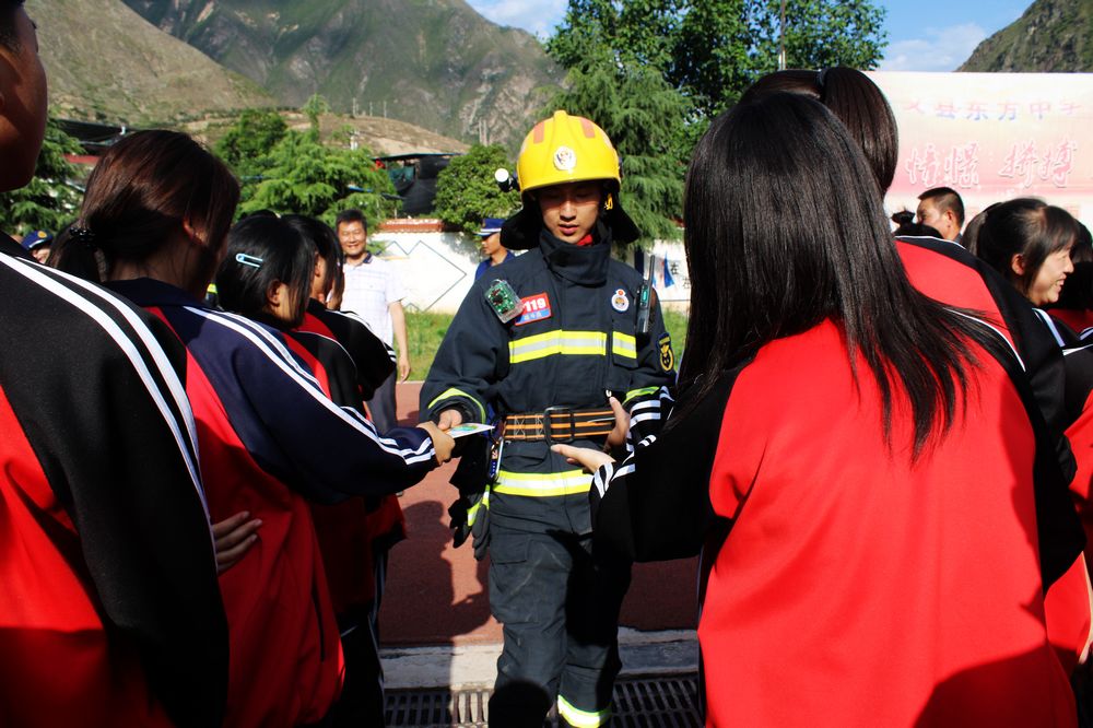 中国甘肃在线文县讯(通讯员 翟欣为进一步推进“安全生产月”消防宣传工作,消除各类火灾隐患,提高学校师生安全防范意识和应急处置能力,近日,文县消防救援大队联合石坊乡镇部门前往文县东方中学开展安全生产月防灭火和地震逃生应急预案演练“进校园”活动。
