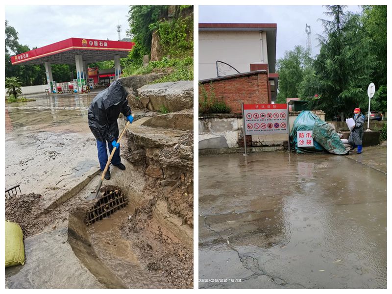 中石油甘肃陇南分公司徽两销售片区在接到暴雨红色预警信息后,立即安排部署各加油站启动防汛抗灾应急预案。各加油站结合自身所处山坡、临江、靠河等特殊的地理位置,第⼀时间组织员工对重点部位及风险隐患点设置警示牌,增加巡查巡检频次,危险河道拉起警戒线示警。片区经理与各加油站员工们清理排洪沟,做好沙袋封堵防护,全力应对汛情可能带来的各类风险。