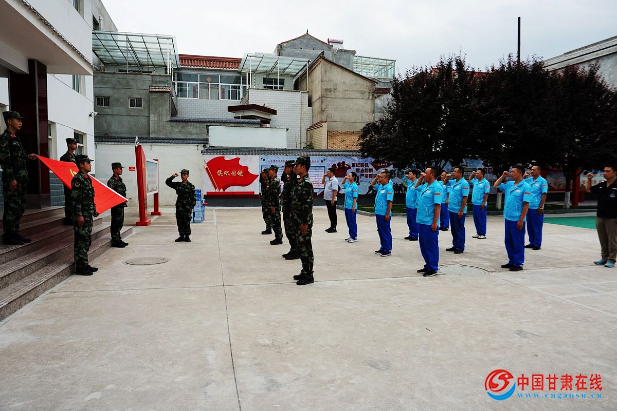 一进军营,武警官兵们在门口列队欢迎,中队教导员带领公司党员及员工们参观了军事化管理内务及出警所用的战略装备。武警战士现场演示了叠被子要领,手把手帮教员工们如何强化内务管理工作。西礼片区全体党员与武警礼县中队党员集体面对党旗,重温入党誓词,共同进行了主题党日学习活动。中队教导员代表中队对公司的慰问和 长期以来的工作支持表示感谢。