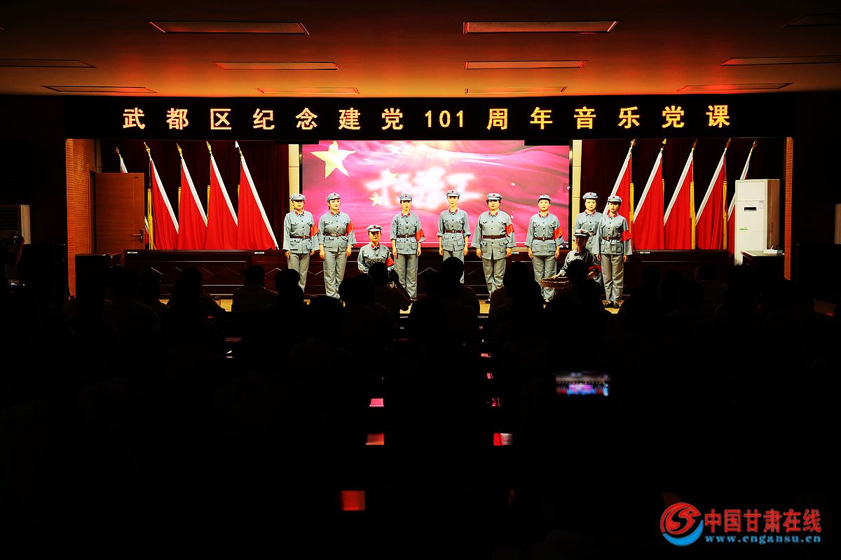 中国甘肃在线武都讯(通讯员 李圆丰)6月28日,陇南市武都区举行以“历史的旋律”为主题的音乐党课。一段段可歌可泣的峥嵘岁月,融合一首首耳熟能详的红色歌曲,让广大党员在音乐中聆听党课,在经典旋律中牢记使命,感悟中国共产党始终不渝为人民的初心宗旨。