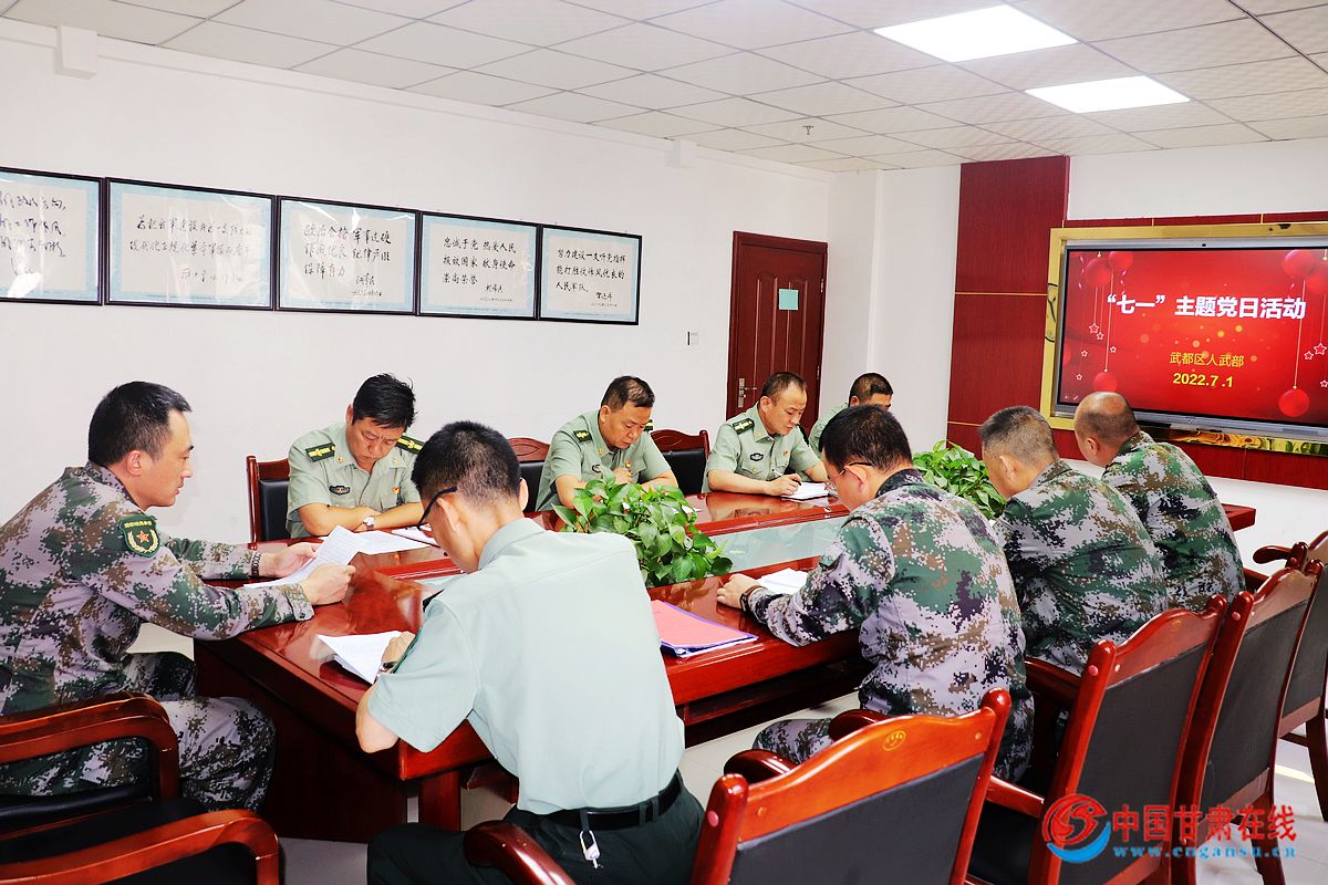 中国甘肃在线武都讯 7月1日上午,在党的第101个“生日”来临之际,陇南市武都区人武部以党支部为单位,组织全体党员开展“七一”主题党日活动。