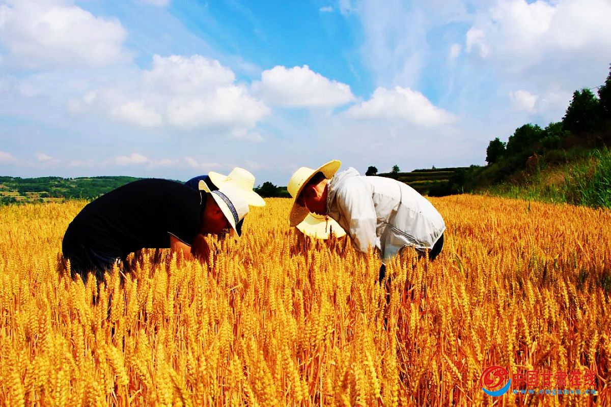 在西汉水沿岸的城关镇石寨村一台台大型收割机在田里往来穿梭,一亩地二十几分钟就收割完成,村民们站在自家地头安心等待着颗粒归仓。有了收割机的帮忙,村民们轻松了不少。但是他们也没有闲着,拿着编织袋等在一旁,装袋、装车,将小麦运往附近的场地进行晾晒。经过一轮翻晒、清扫、除杂……汗水早已浸透了村民的衣服,然而,他们脸上仍挂满了笑容。村民老王笑着说:“今天天气真好,最适合晒谷了。”