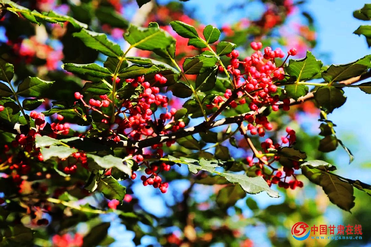 中国甘肃在线武都讯(通讯员 周红霞)七月的武都,漫山遍野的大红袍花椒挂满枝头,连空气中也浸润了花椒的香味,浓郁鲜麻、椒香四溢。远远望去,蓝蓝的天空下,绿树丛中的花椒显得格外的鲜红,而一阵阵椒香味,既是乡村振兴的“本土味”,更是百姓幸福生活的“真滋味”。
