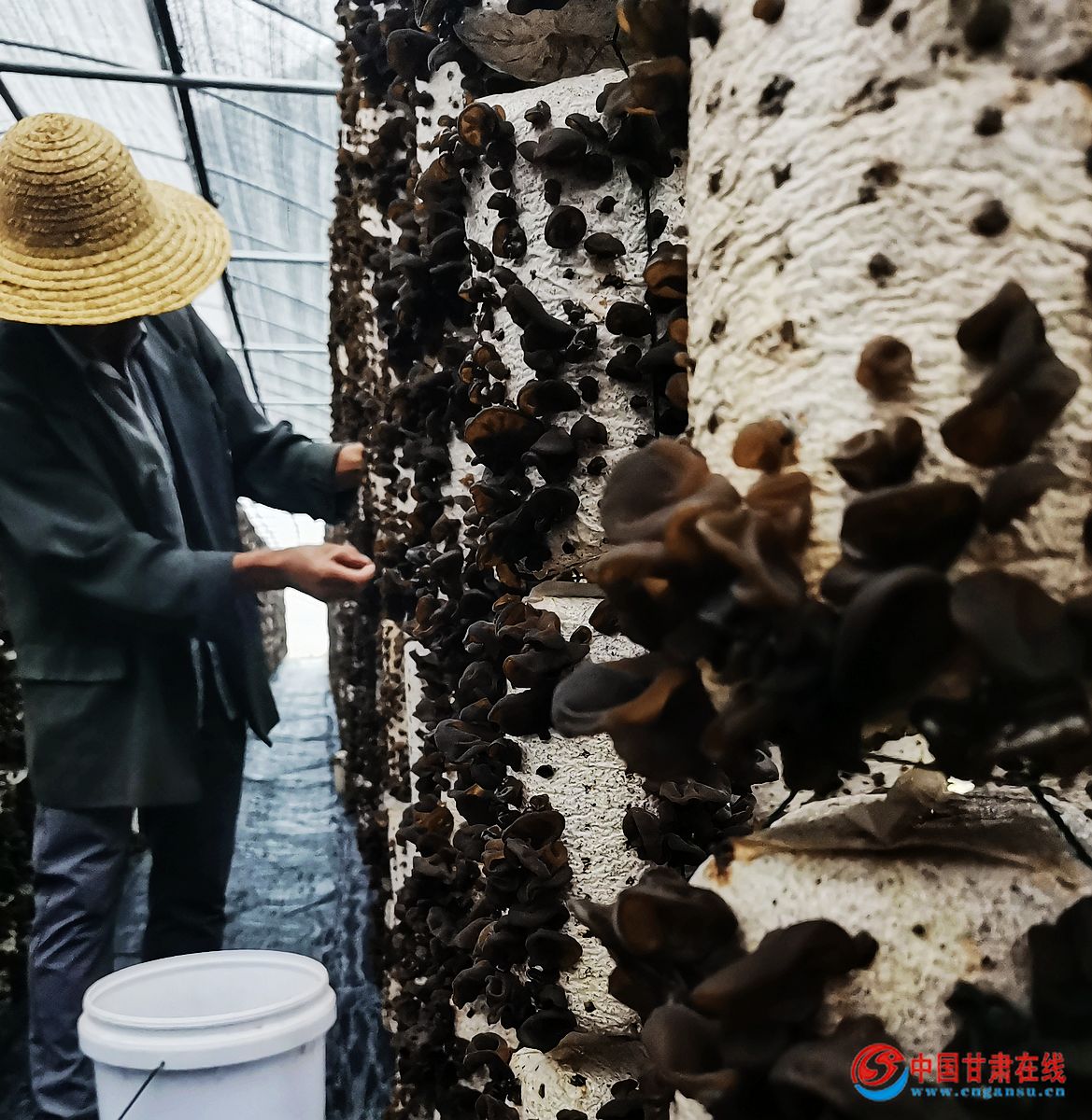 中国甘肃在线宕昌讯 炎炎夏日,在宕昌县八力镇石门村力源联合社食用菌种植基地里,黑色透亮的小木耳缀满棒头,菇农们正忙着采摘、装箱,直播……现场一派丰收忙碌景象。