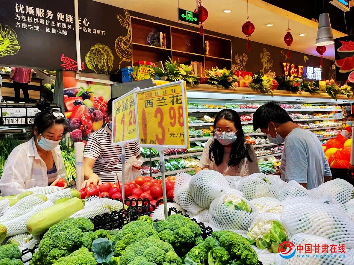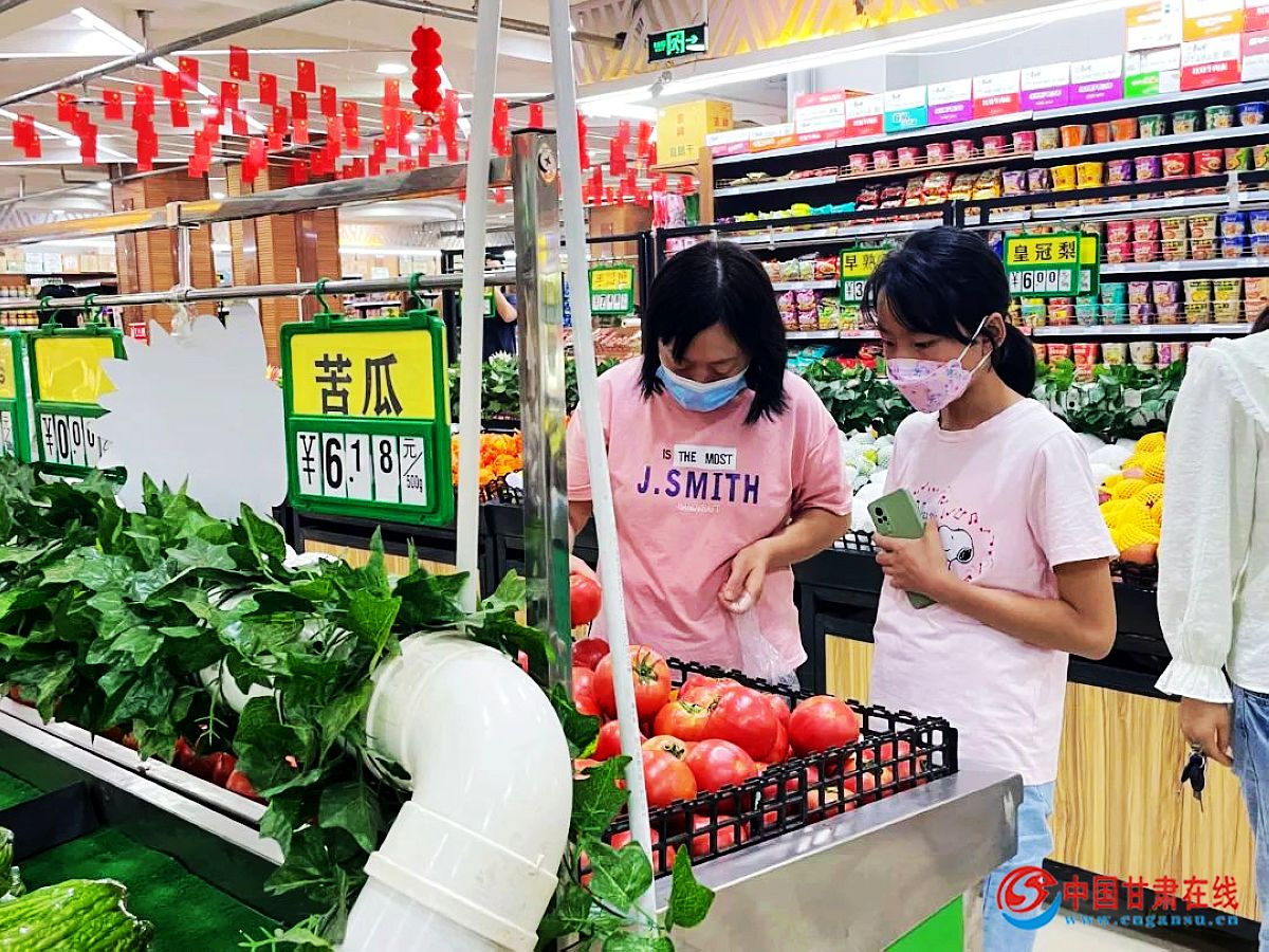 在陇上春天生活超市记者看到,人员流动正常,市民自觉佩戴口罩,均按要求出示健康、行程“双码”后有序进入;超市内,时蔬区各类蔬菜水果品种多样、新鲜量丰,其他区肉品、粮油、饮品等各类物资十分充足,市民采购如往常,人员并不比往常多。
