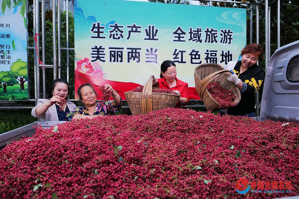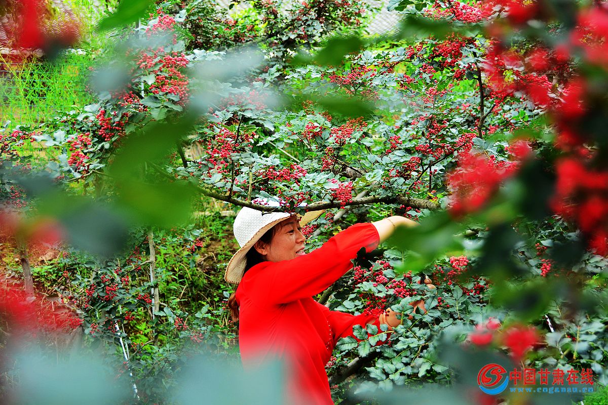 中国甘肃在线两当讯 山间地头,椒香醉人。当前,甘肃省两当县万亩花椒全面进入采摘季,各乡镇的花椒基地一派繁忙,绘出一幅美丽的丰收图。