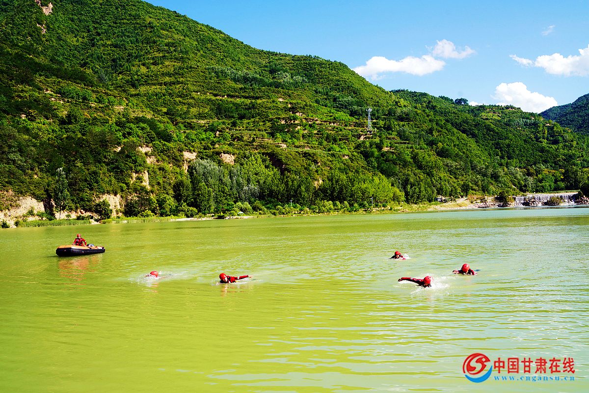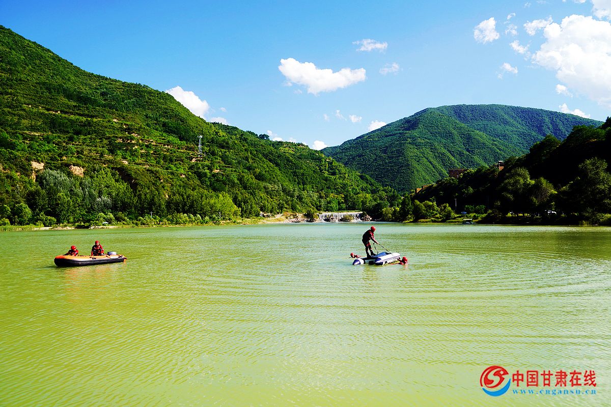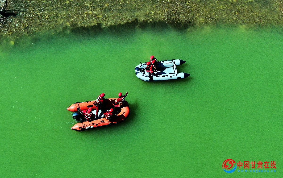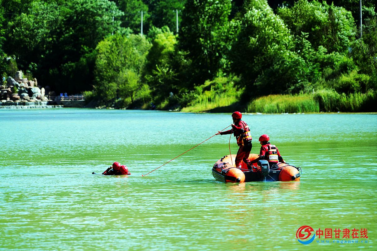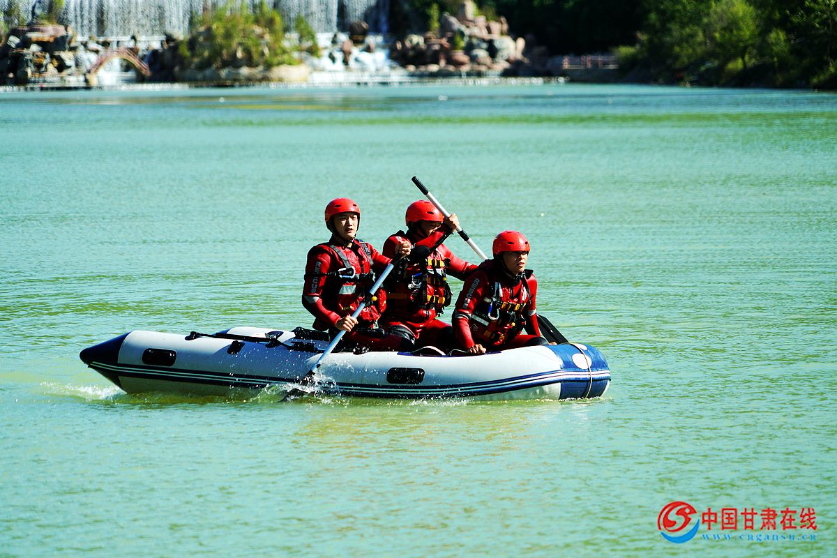 图片说明:2022年7月20日,宕昌县消防救援大队在水域开展防汛救灾应急演练。
