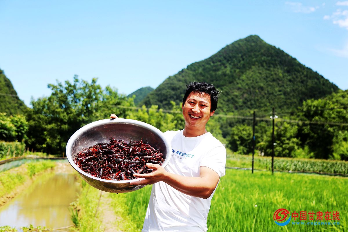中国甘肃在线徽县讯徽县讯(通讯员 高琼)盛夏的徽县,蛙声阵阵,蝉鸣声声。走进江洛镇石头坪村,风吹稻禾卷起千层浪,绿油油的稻田在阳光的照耀下显得格外优美。稻田边环绕着1米多宽的沟渠,不计其数的小龙虾爬过沟渠进入稻田觅食,呈现出一幅“虾在稻中游,稻在虾田长”的生动图景。