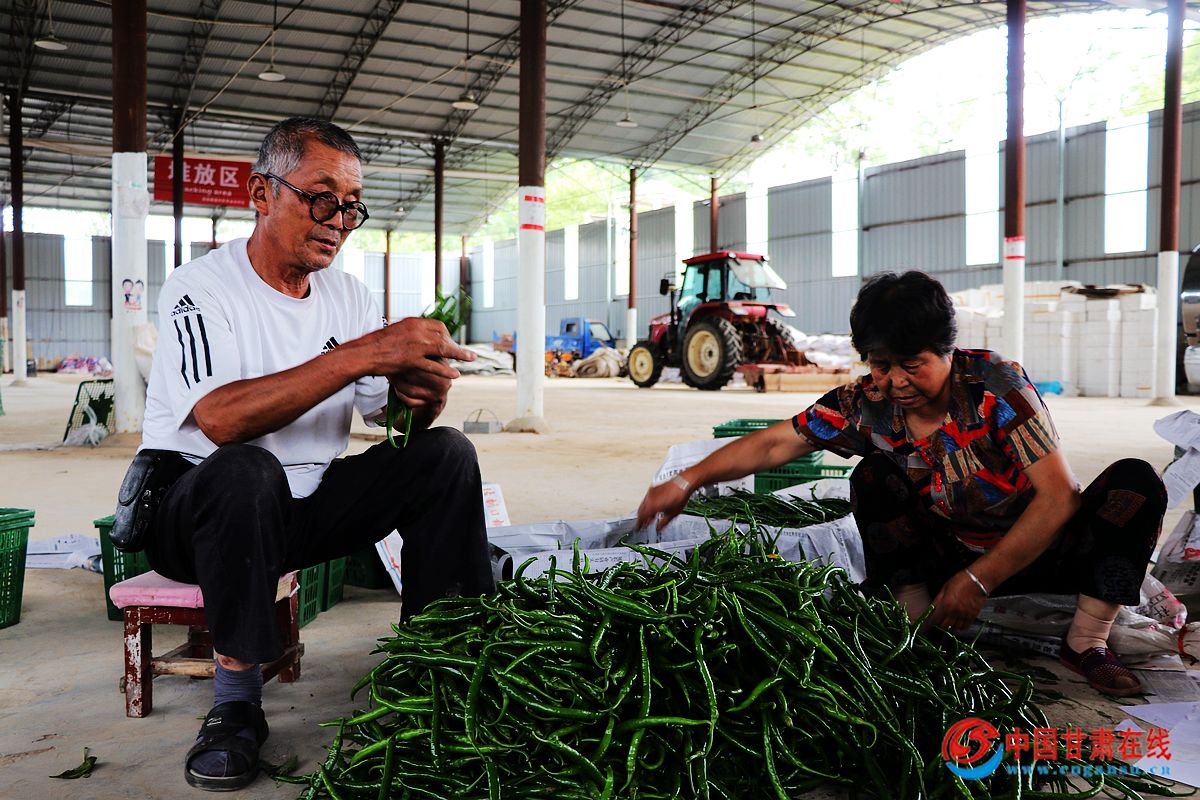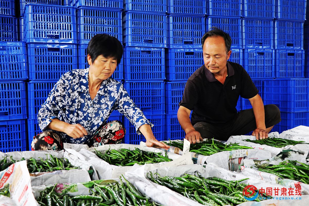 成县红川镇席坪村五社村民赵罗成在去年试种取得好的效益的基础上,今年扩大种植了16亩辣椒。一大早,他就和家人到辣椒地里采收第一茬青椒,并在傍晚拉到收购点进行销售,收获自己辛勤的劳动成果。