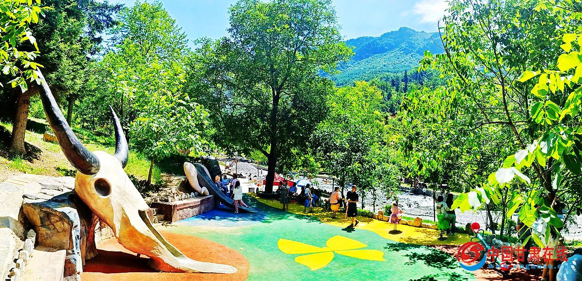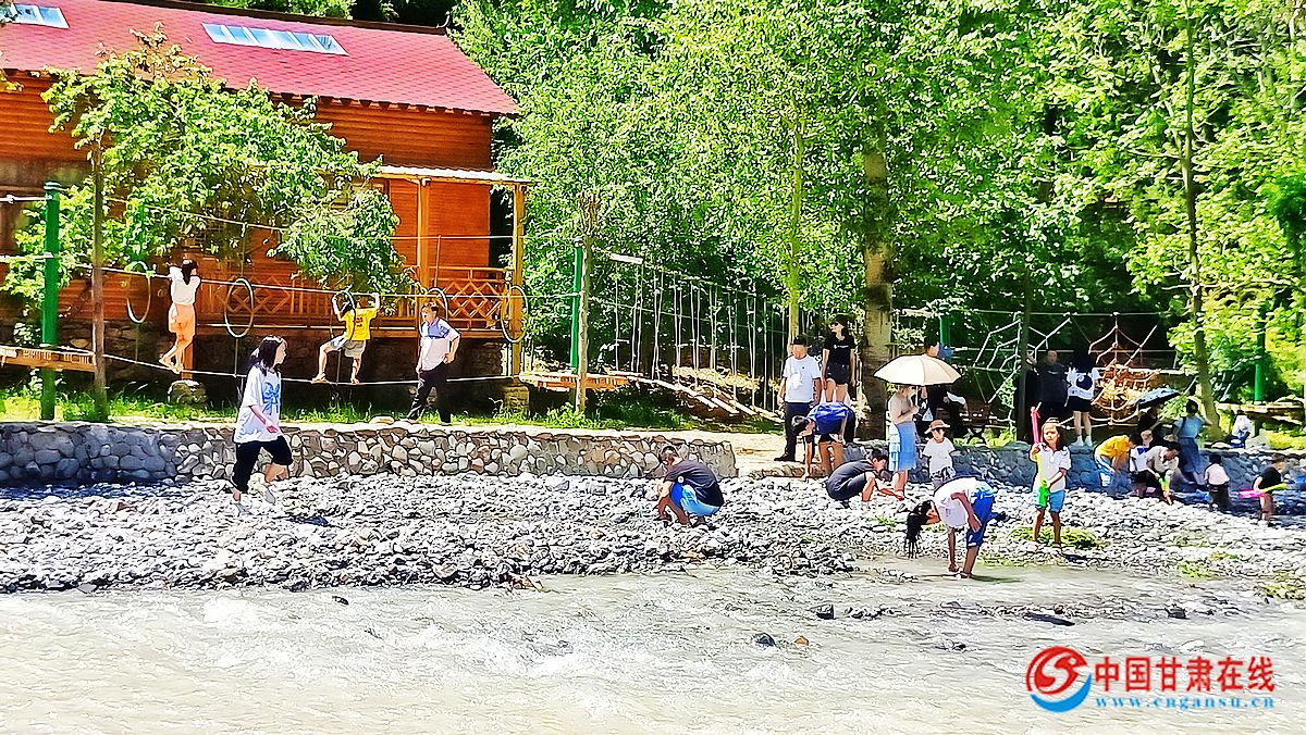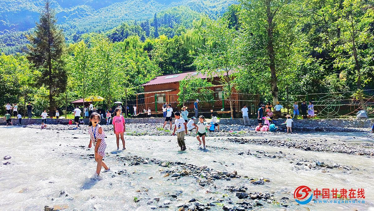 中国甘肃在线宕昌讯 盛夏,艳阳高照。陇南官鹅沟5A级景区——宕昌县新城子藏族乡岳藏甫村一渠碧水波光粼粼,倒映着蓝天白云;河畔以水串景,风光旖旎;村民沿岸依水兴业,笑靥如花,勾勒出一幅“河畅水清、岸绿景美、业旺人和”的生态画卷。