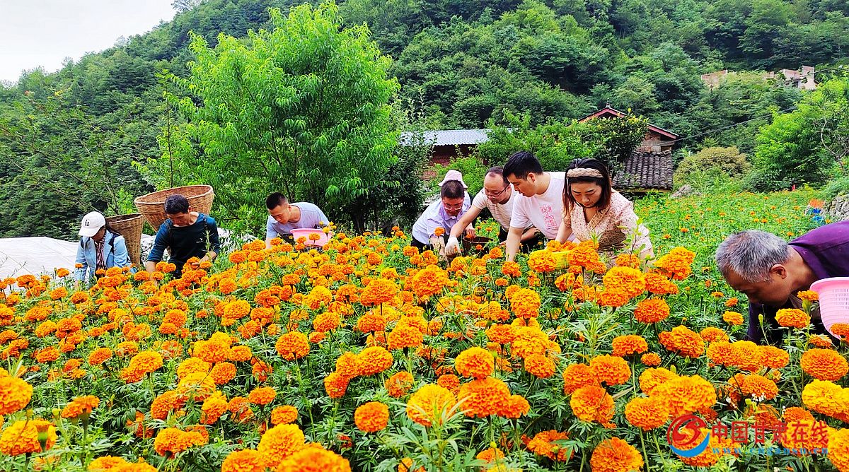 大堡镇水洞寺是康县集自然风光、红色文化、农家风情为一体的生态旅游景区,四周群山环抱,古木参天,一座古寺,掩映树木中,石拱小桥,横卧泉上,一直是康县人游玩纳凉的好去处。时下的水洞寺,田地里、山坡上,放眼望去,到处都是金灿灿的万寿菊竞相绽放。忙碌的群众迎来了今年第二波万寿菊花的采摘,花丛中人影穿梭,一张丰收图卷正徐徐打开。这让昔日的水洞寺,不仅“颜值”担当,还“价值”倍增。