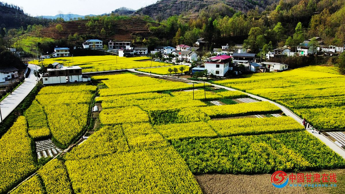 油菜作为传统的农作物,在康县种植历史由来已久。大南峪镇是该县油菜主产区,一直将油菜产业作为一项农民增收的短平快项目来抓,全镇今年发展油菜种植2000亩。进入四月份,在大南峪镇新院、花庙、郑湾至窑坪一带,放眼望去,无论房前屋后,还是山坡渠沟,大片大片的油菜花田,层层叠叠,花团锦簇,在阳光下金光闪闪,摇曳多姿。被大片油菜花海包裹的乡村,青瓦白墙、炊烟袅袅,鸡鸣狗吠,好像一副山水田园图。前来赏花的游人络绎不绝,已经成了康县、乃至周边县区的网红打卡地。