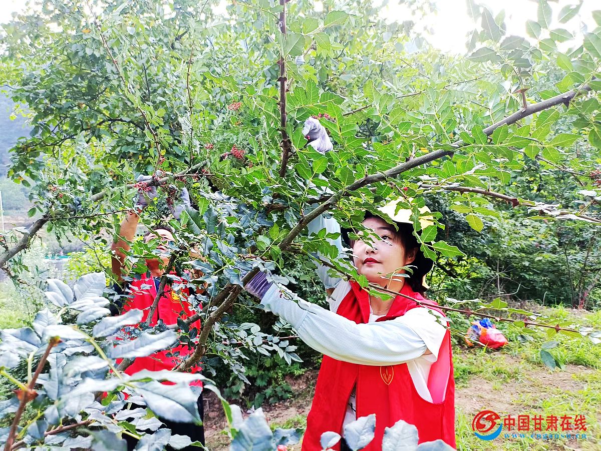 中国甘肃在线两当讯 “太感谢你们了,顶着大太阳给我摘花椒,赶紧过来喝杯水,吃块西瓜,今晚都到我家吃饭。”太渠村村民陈老夫妇热情的邀请着帮忙采摘花椒的党员干部和志愿者们。