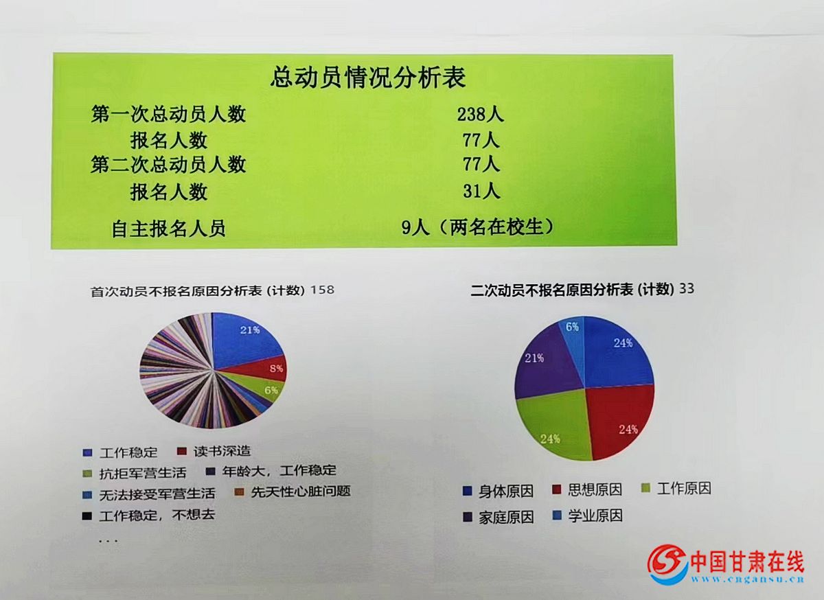中国甘肃在线西和讯 一张“大学毕业生精准动员情况统计表”详细标明了全县适龄青年在哪、在干什么、征兵政策是否了解、为什么不愿参军报名。西和县征兵办根据这张表,划分县、镇、村三级责任人,精准制定动员方案,逐人逐户进行政策宣讲。