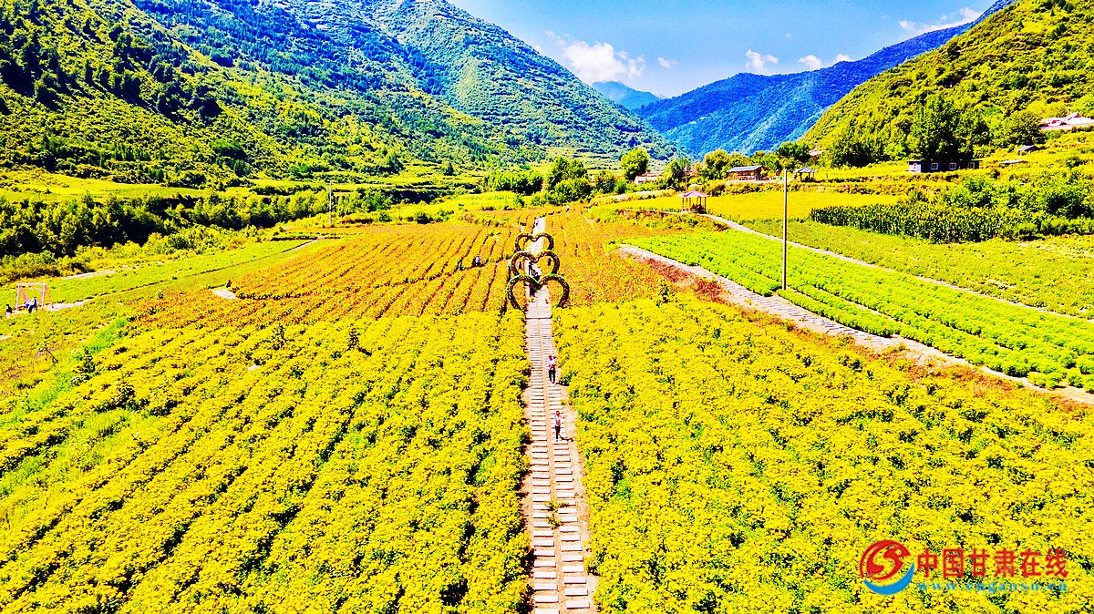 走进宕昌城郊区何家堡乡缸沟村羌韵花海,依山旁水成片的油葵花,格桑花、万寿菊姹紫嫣红、竞相绽放,摇曳生姿的花朵,宛若一张张灿烂的笑脸,汇聚成金色的海洋。慕名而来的游客,徜徉在花田里赏景拍照打卡游玩,享受惬意田园生活。