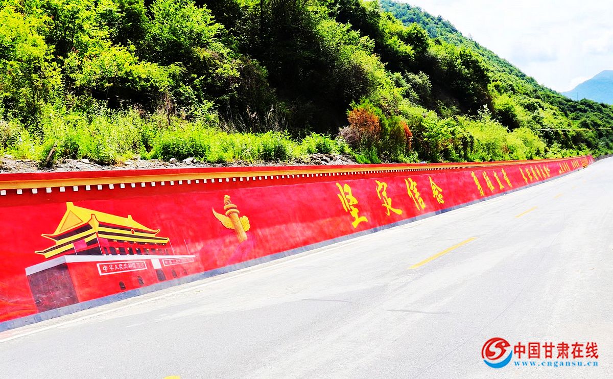 中国甘肃在线宕昌讯 盛夏八月,驱车行驶在平坦宽阔的南腊路段——宕昌县南河镇上漳湾农村公路上,路面干净整洁,两侧绿树成荫,花团簇拥,墙绘彪炳,一派生机勃勃的景象。