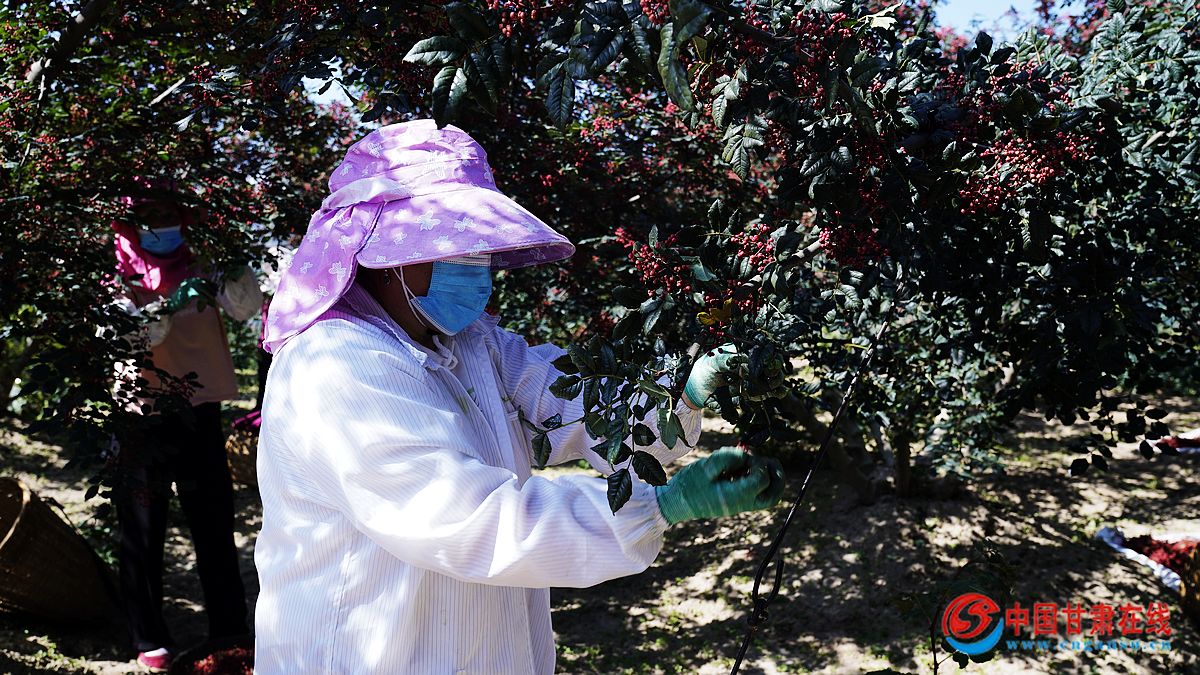 花椒种植户张艳看着自家地里枝繁叶茂的花椒树笑得合不拢嘴,她说:“我们武都花椒颜色红、颗粒大、产量高。每年到花椒采摘的季节都有外地客商来我们村上收购花椒,今年又是一个丰收年,我们家有八亩花椒地,一家人已经采摘了七、八天,今年干椒产量能达到八百多斤,收入预计达到四万多元。”