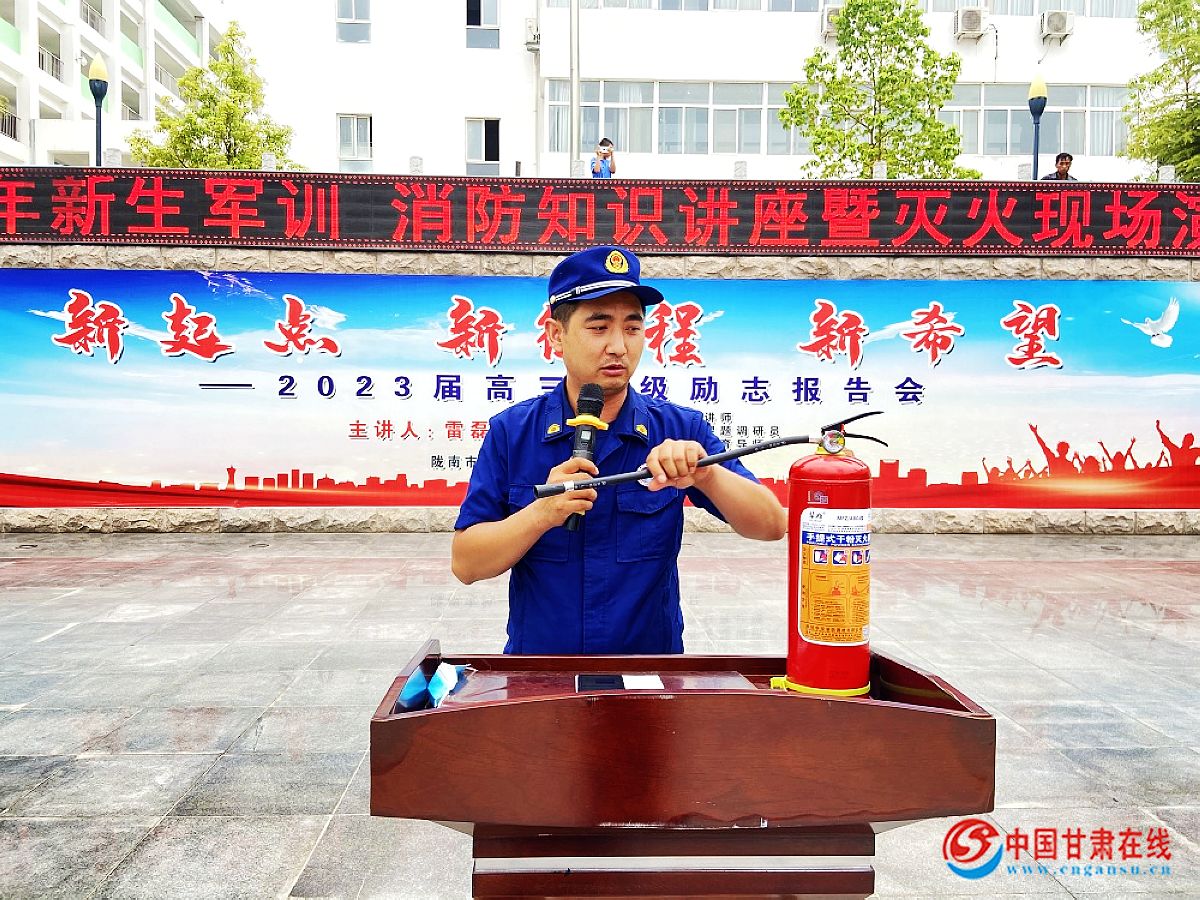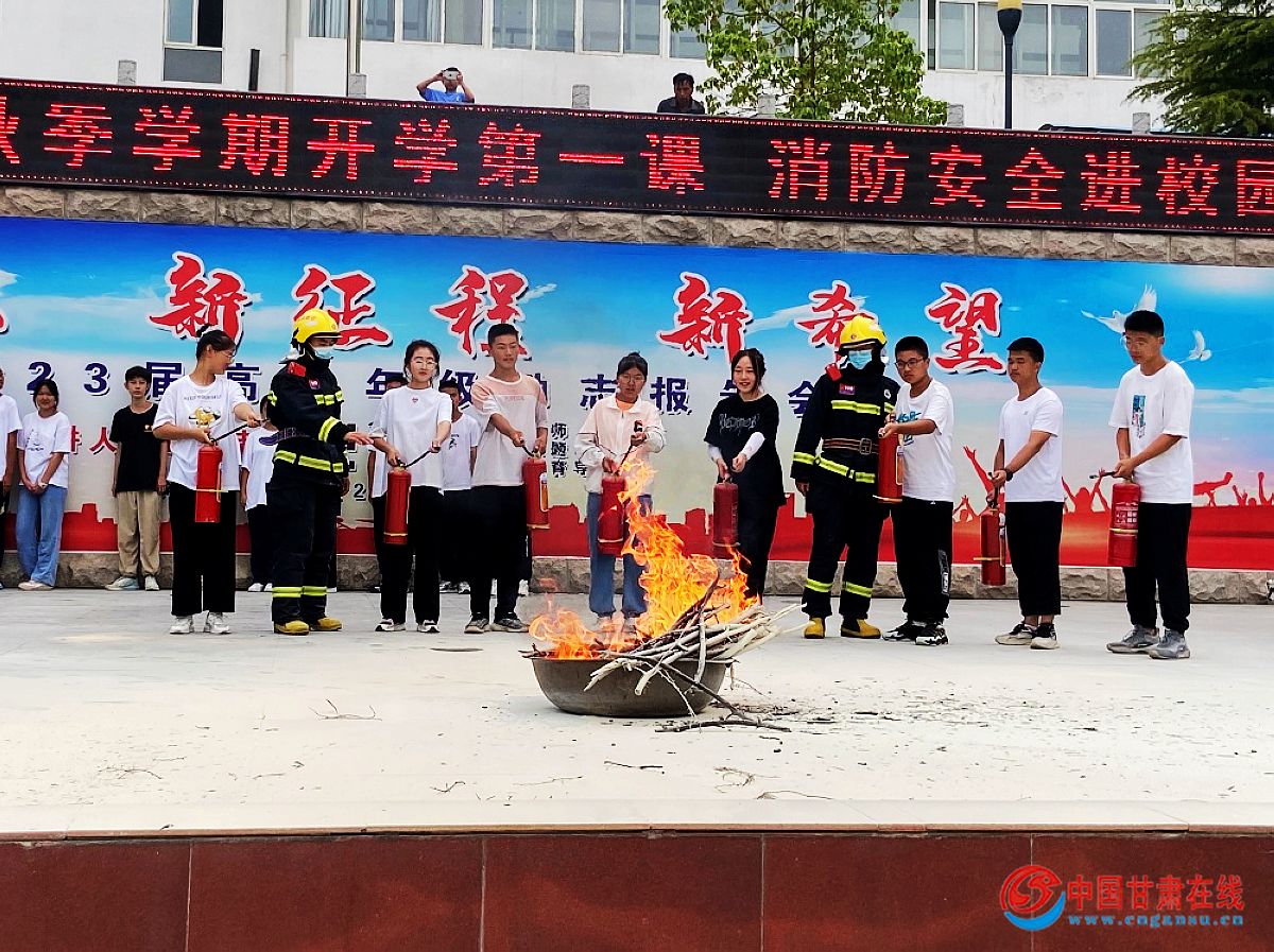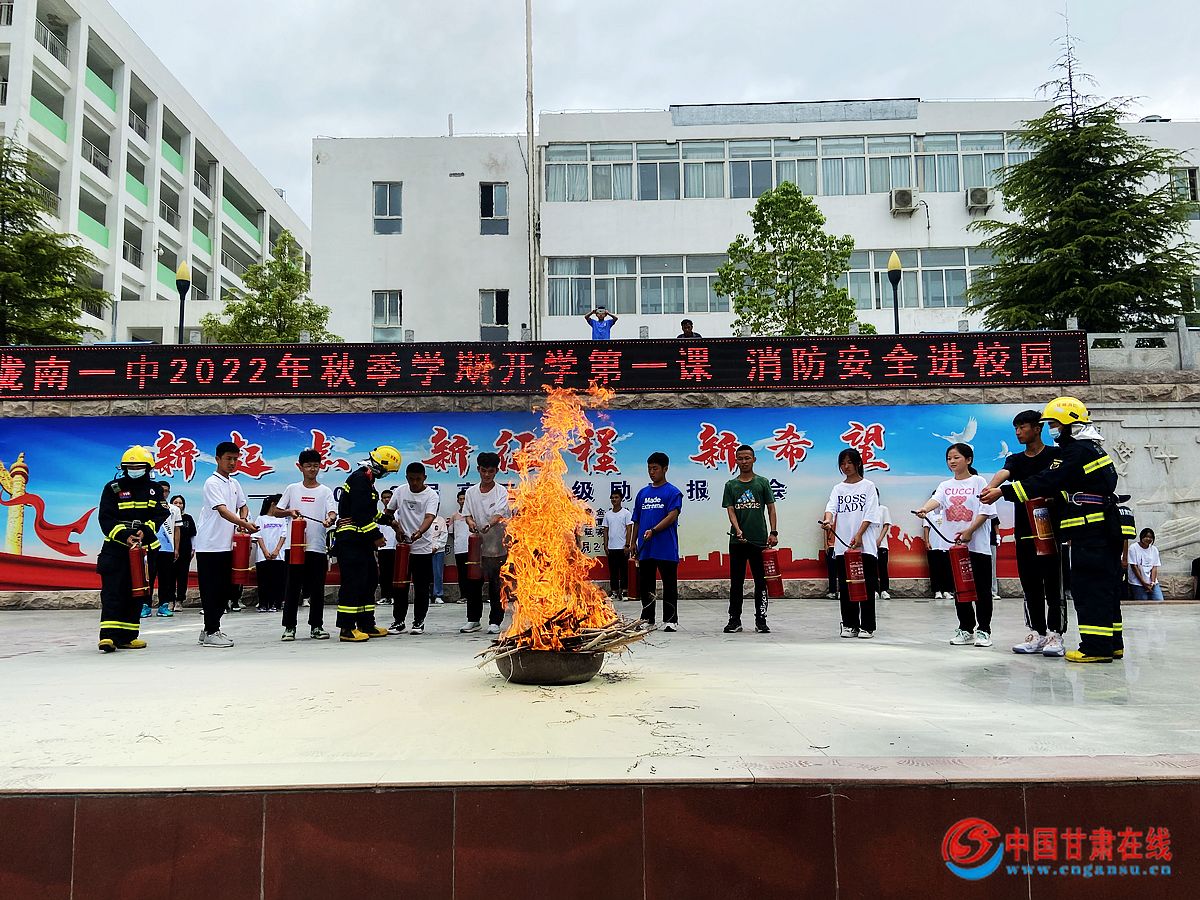 中国甘肃在线武都讯 新学期伊始,为进一步做好校园消防宣传工作,提高学校师生的消防安全意识和火场逃生自救能力,近日,陇南市武都区消防救援大队走进陇南一中,通过消防知识讲解、参观消防车及器材装备展示、灭火实操演练等形式为学校师生带来了丰富多彩的“开学第一课”,切实达到“教育一个孩子、带动一个家庭、影响整个社会”的目的。