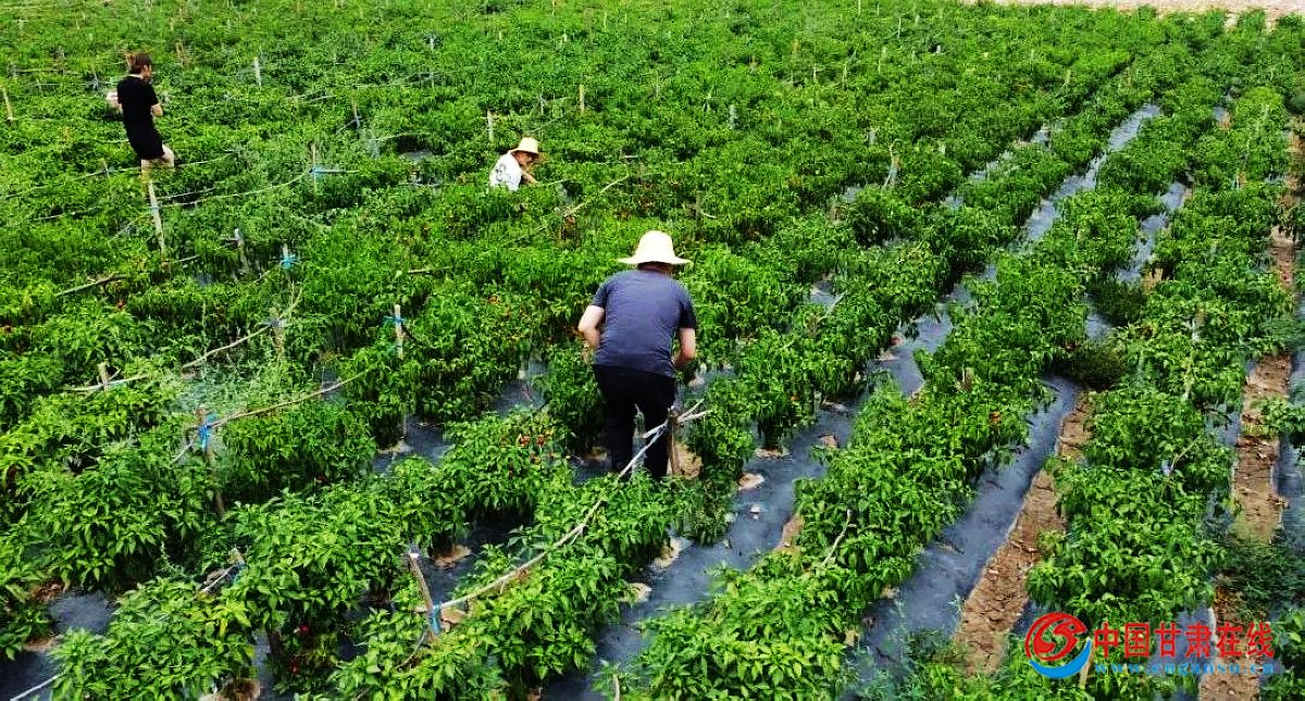 中国甘肃在线礼县讯 近日,礼县白河镇2200余亩订单辣椒迎来丰收季。田间地头,一株株翠绿的辣椒长势旺盛,一颗颗“红灯笼”挂满了枝头,硕“果”累累的景象让人看着十分欣喜,村民们正忙着采摘新鲜的辣椒。