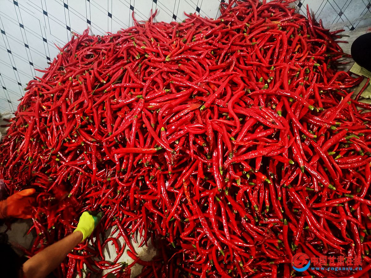 中国甘肃在线徽县讯(通讯员 马育江) 秋收时节,在徽县永宁镇苏沟村辣椒种植示范点,成片的辣椒生长茂盛,辣椒树间,红色的辣椒色泽鲜亮,光彩夺目,田间地头,村民们正小心翼翼地将一个又一个火红的辣椒放入框中,一幅充满希望的采摘画卷正在这里铺开。