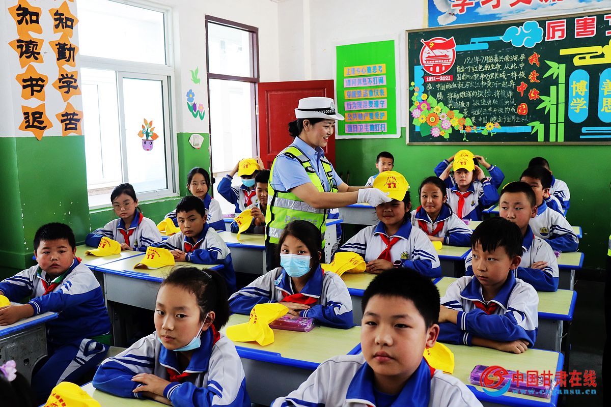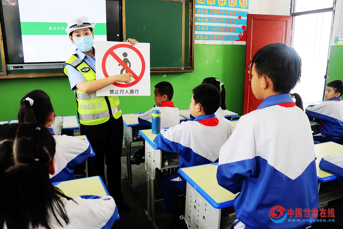 中国甘肃在线康县讯 为进一步提高中小学生的道路交通安全意识,强化学生自我安全保护能力,预防和减少道路交通事故。9月8日下午,陇南康县公安局交警大队以秋季新学期开学日为契机,积极组织宣传小分队走进辖区城关二小,为广大师生们赠送“秋季交通安全大礼包”。