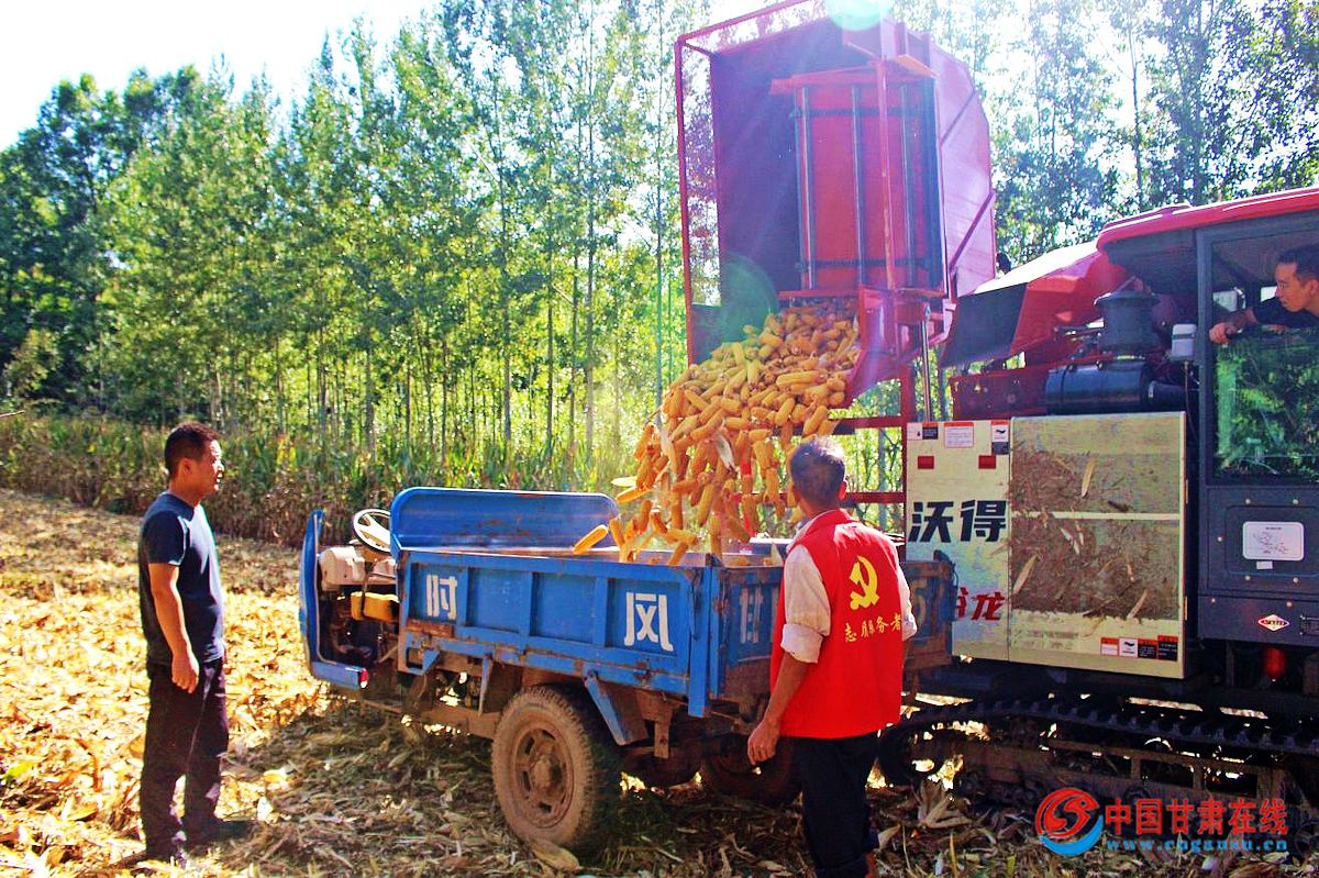 中国甘肃在线两当讯(通讯员:杨欢 韩静)金秋九月,两当县5.07万亩玉米迎来丰收,走进地里,大型收割机正开足马力来回穿梭,伴随着机械轰鸣声,一排排玉米被收割机吞入“腹”中,一棒棒成熟的玉米则直接进入收割机的粮箱里,秸秆随即被粉碎到地里成了有机肥料,拉运玉米的农用车也紧随其后,有了机械化的加持,玉米转瞬归仓,收获的喜悦洋溢在田间。