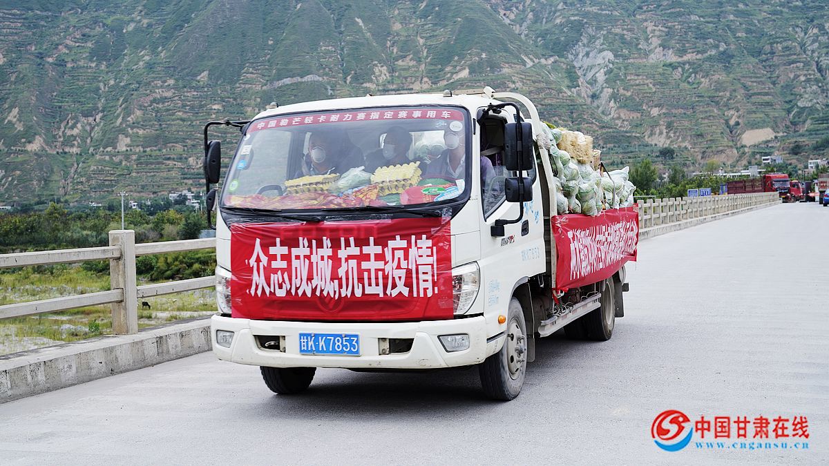 一车车满载蔬菜、水果、挂面等物资的货车整装待发,为这场没有硝烟的战疫增添了暖心瞬间。