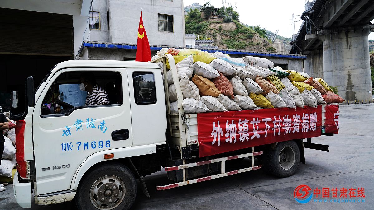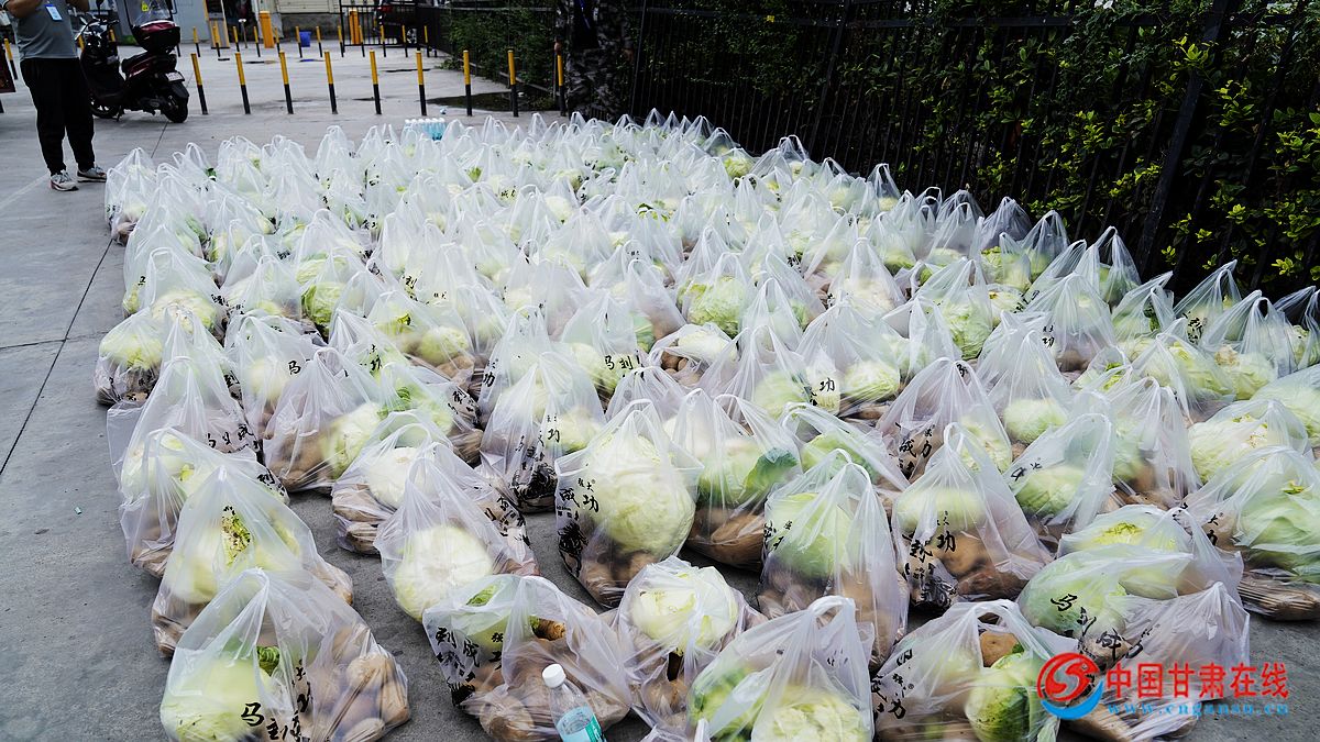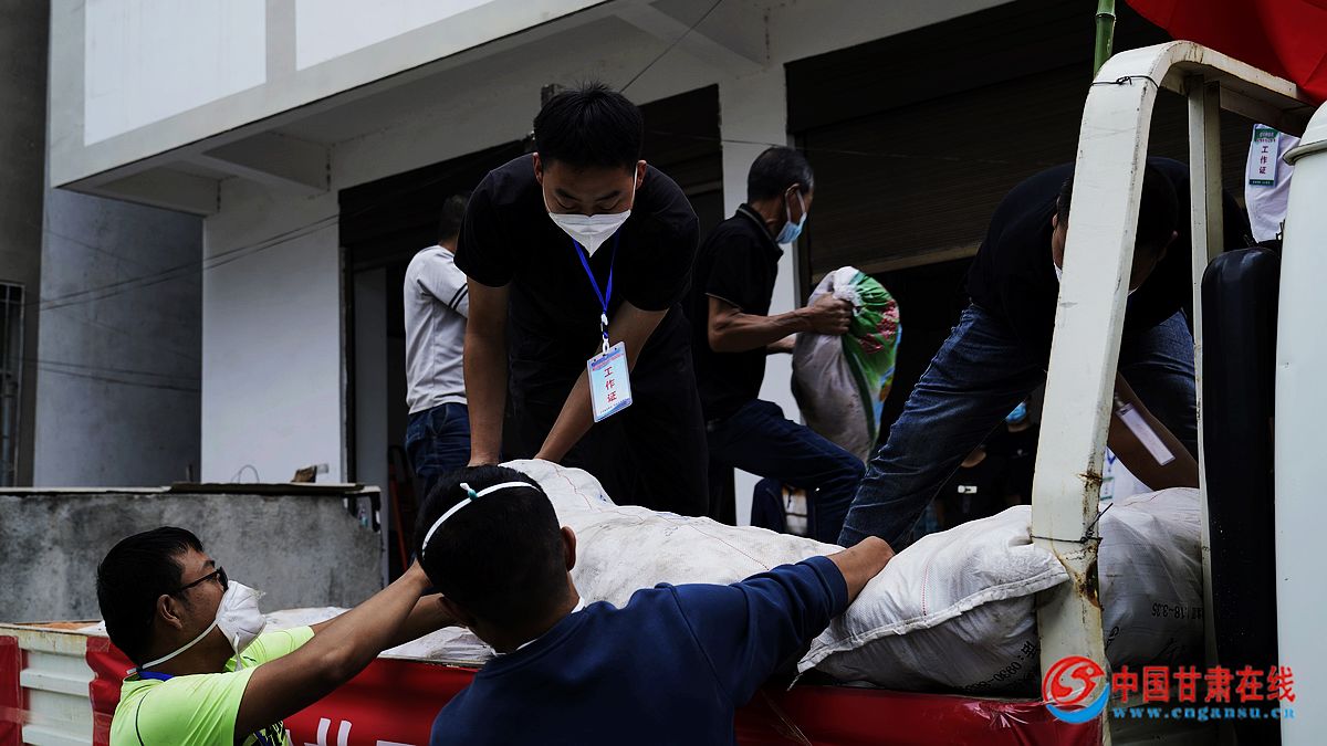 中国甘肃在线武都讯(通讯员李剑超 李圆丰)9月18日,记者在清水沟社区广场上看到,由武都区外纳镇艾下村群众自发筹集的7.5吨蔬菜和3700元现金送达疫区。社区工作人员和艾下村群众当起了“打包员”、“搬运工”,这些蔬菜经过分包、装车后将在当天晚上送到清水沟社区群众的手中。
