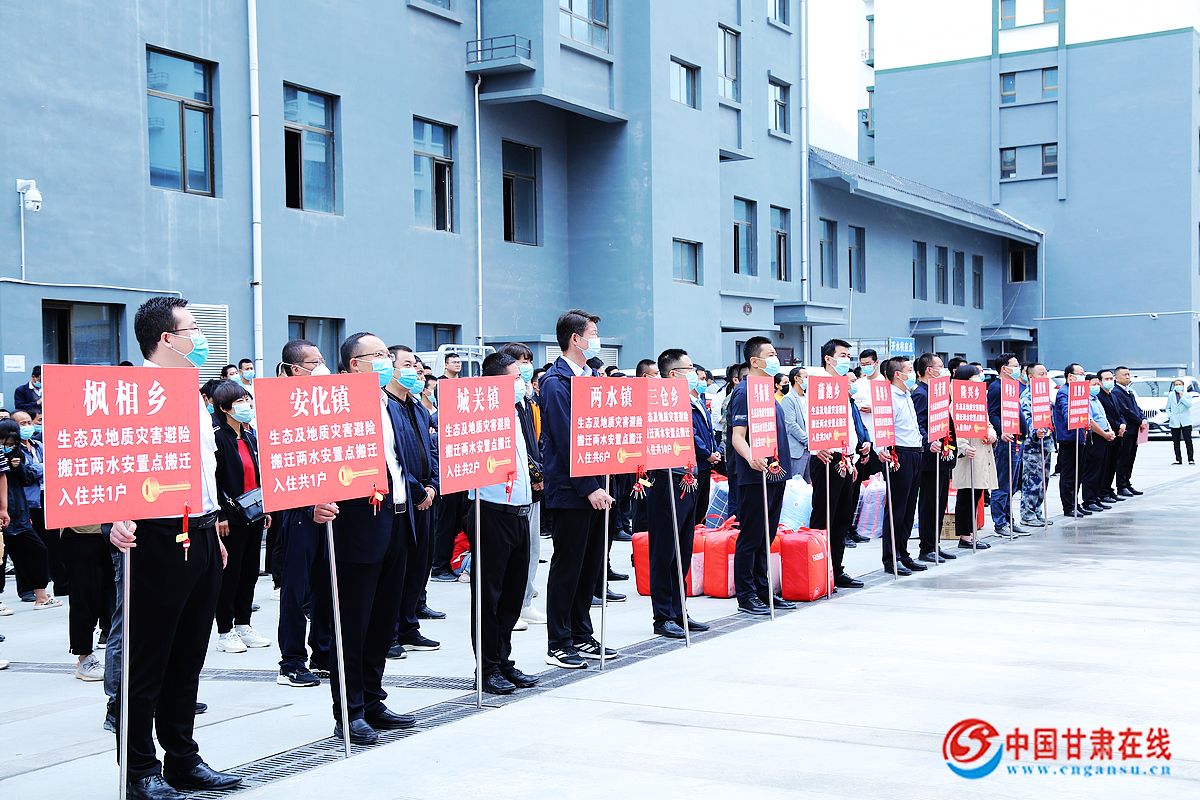 中国甘肃在线武都讯(通讯员 李圆丰 李剑超)9月20日,陇南市武都区举行了生态及地质灾害避险搬迁两水安置点搬迁入住启动仪式,来自池坝、马营、蒲池、两水、马街、隆兴、三仓等乡镇的110户群众喜迁新居。