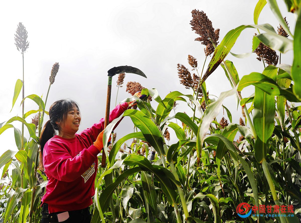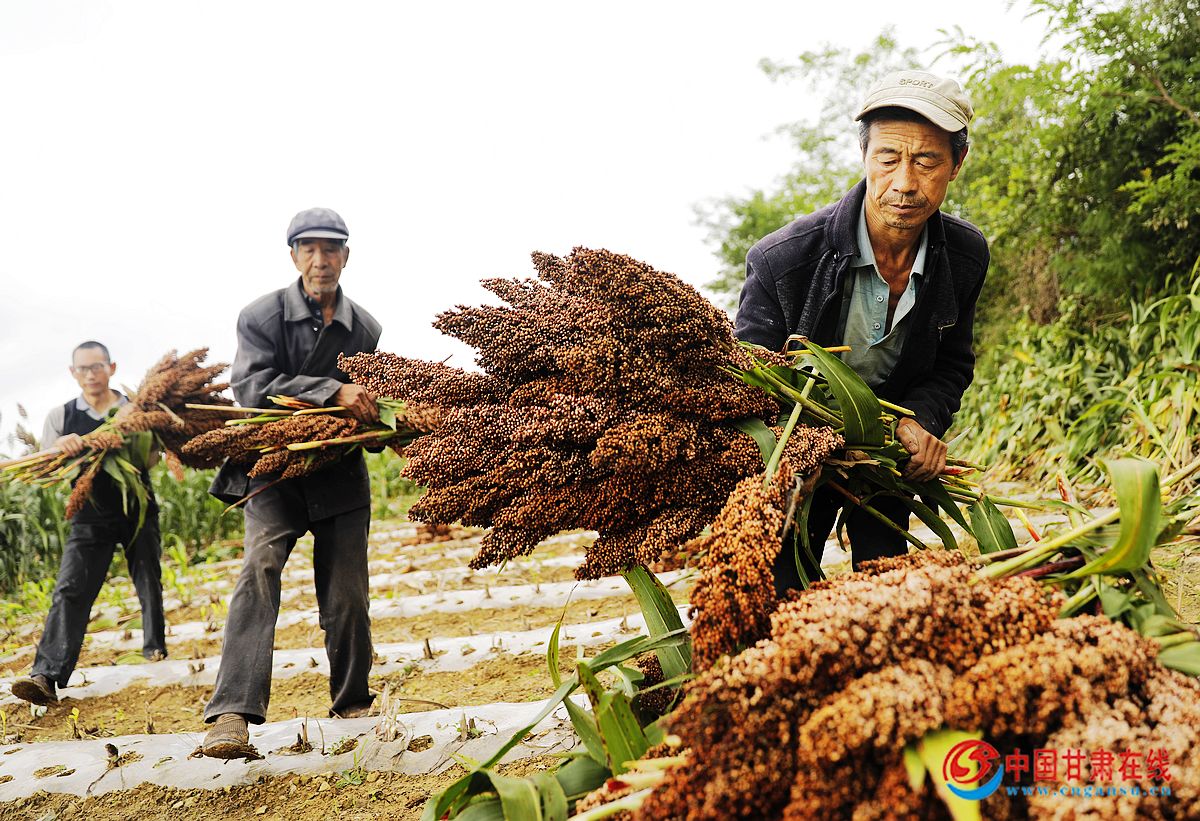 中国甘肃在线成县讯 高粱知秋,可揽丰收。时下正值高粱丰收时节,成县黄陈镇近千亩高粱红遍田间地头,迎来沉甸甸的收获,种植户趁着晴好天气抓紧收割,丰收的喜悦与火红的高粱构成了一幅喜庆的丰收图景。