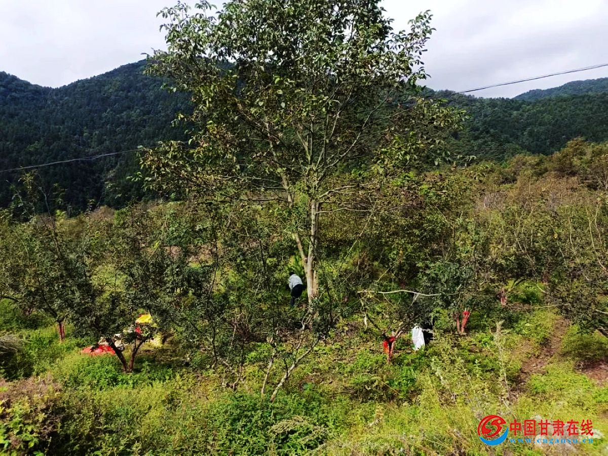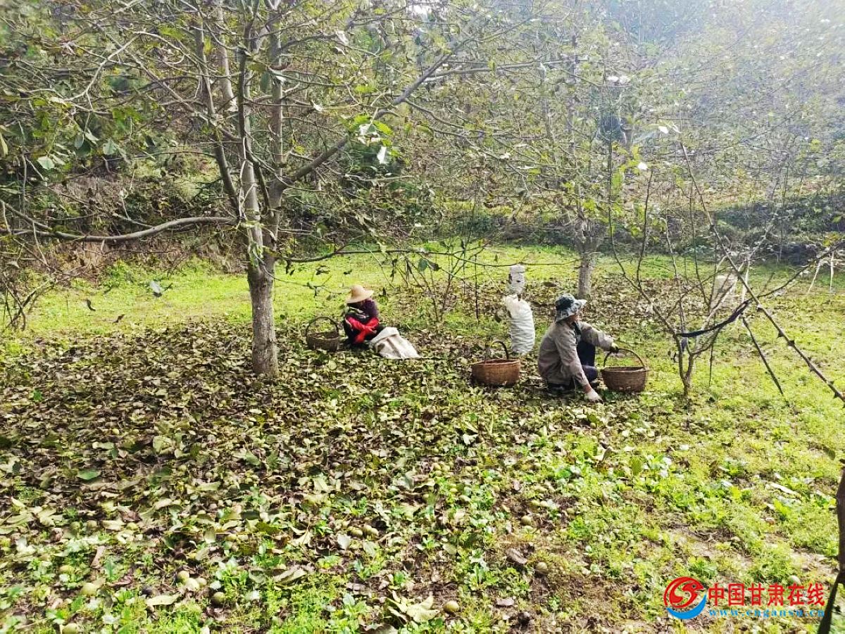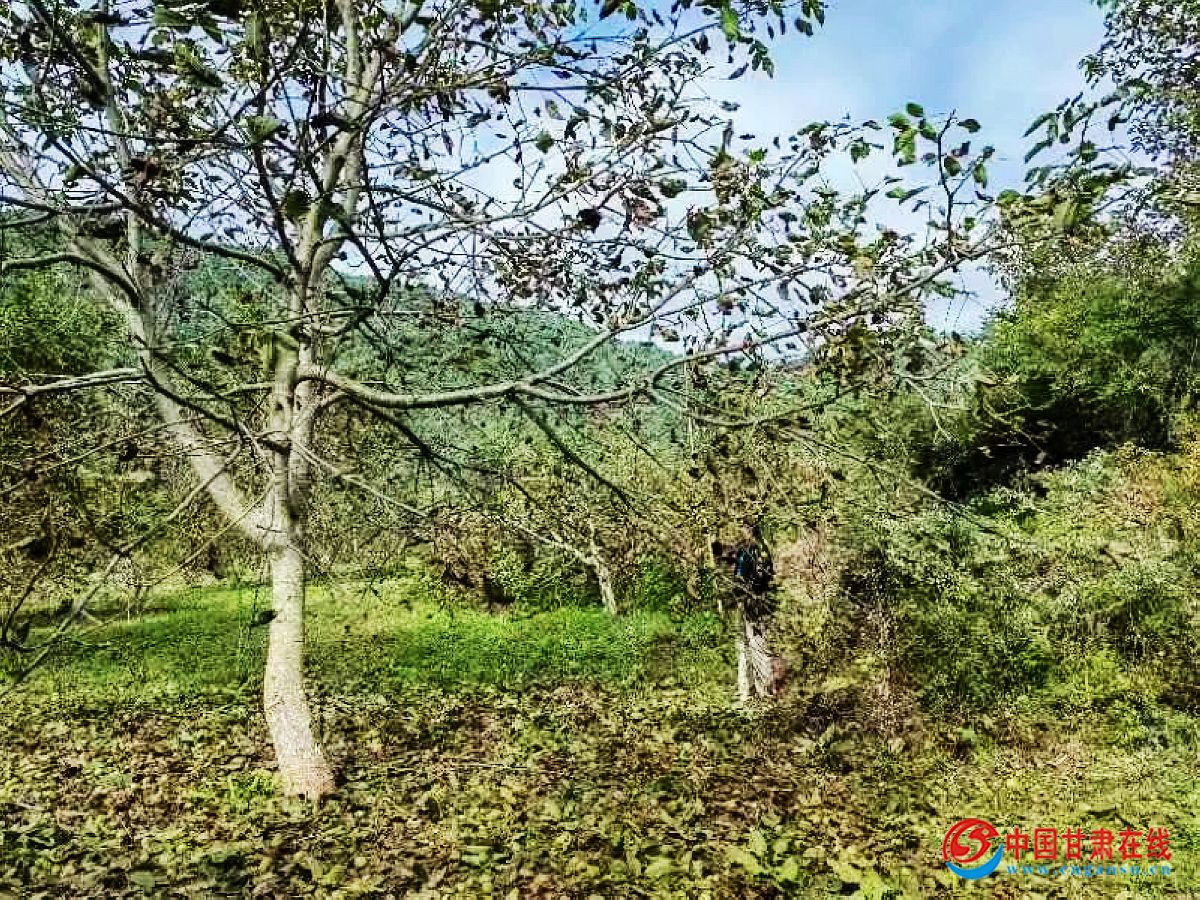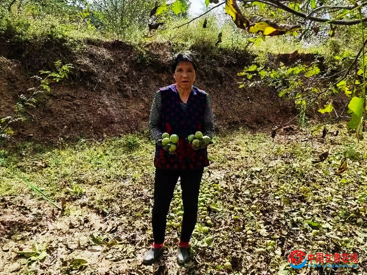 中国甘肃在线两当讯 每年临近秋分时节,两当县张家乡这片土地都会上演着一场人与自然的联欢。竹竿“啪啪啪”地敲打声、核桃落地的“噼噼啪啪”声、群众的欢笑声,总会交织成一曲欢快的乐章。