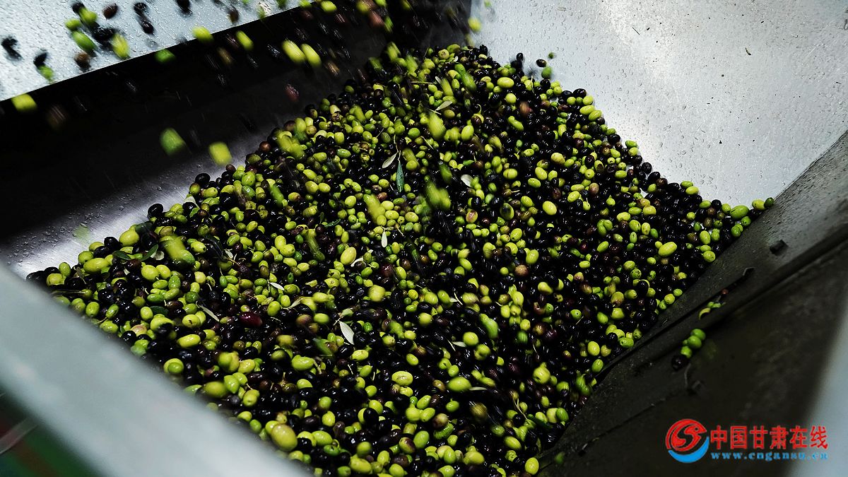 中国甘肃在线武都讯(通讯员:李剑超 白雪茹)金秋十月,漫山遍野的油橄榄挂满枝头。武都区54.6万亩油橄榄陆续进入成熟采摘期,也是橄榄油开榨的最佳季节。10月4日,记者看到,在祥宇油橄榄科技有限公司的加工现场,等待过秤的种植户已经排成了一条长队,空地上停满了前来交售橄榄鲜果的运输车,企业工作人员和种植户们正忙着把过完秤的橄榄果运输到生产车间。厂房里生产线火力全开,一筐筐分装好的鲜果被传送带送进加工车间,进行压榨。